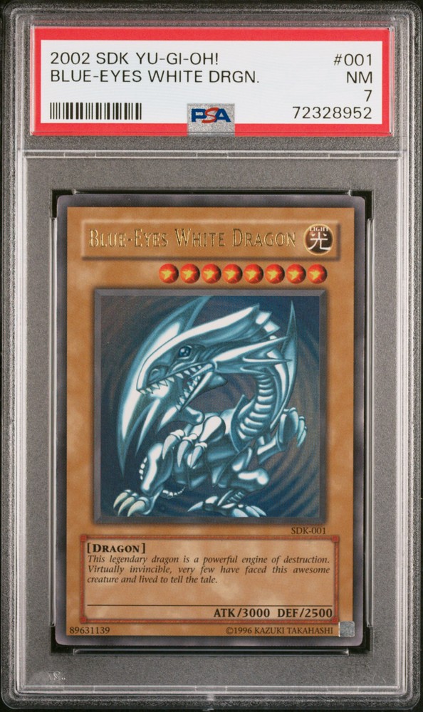 Description Condition: PSA 7 NEAR MINT Availability: In Stock You are Purchasing YUGIOH SDK-001 BLUE-EYES WHITE DRAGON ULTRA RARE HOLO FOIL PSA 7 NM #72328952 Professionally graded by Professional Sports Authenticator (PSA) *PLEASE REVIEW PHOTO(S) BEFORE BIDDING/BUYING. >>MORE GRADED YUGIOH CARDS<< IG: CARD_RUSH_INC Payment Options Payment is expected within 7 days of your purchase date. We accept all forms of payments through Paypal. Shipping and Handling We ship to all U.S. states, U.S. territories, APO/FPO locations and any international countries listed under our "ship to" heading. Shipping and Handling is calculated based on the combined shipping weight of your item(s). Please use the shipping calculator to estimate your shipping and handling charges. In order to qualify for combined shipping terms, all items must be paid for in one payment; please do not pay until you are done bidding/shopping. Please contact us if you have any questions regarding our shipping and handling terms. Shipping and Delivery Packages are shipped out every Monday, Wednesday, and Friday. Domestic Packages take approximately 2-7 days to arrive. International packages may take a little longer to arrive, typically 1-4 weeks. Please allow ample transit times before inquiring about your package, thank you. Sales Tax Sales tax will be automatically collected by Ebay. Customer Service We will make every effort to get your purchase is mailed in a timely manner. Please contact us if you have any questions or concerns; we would love to hear any suggestions you have on how we can improve your eBay experience. Thank you for visiting us today.