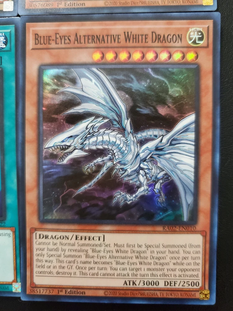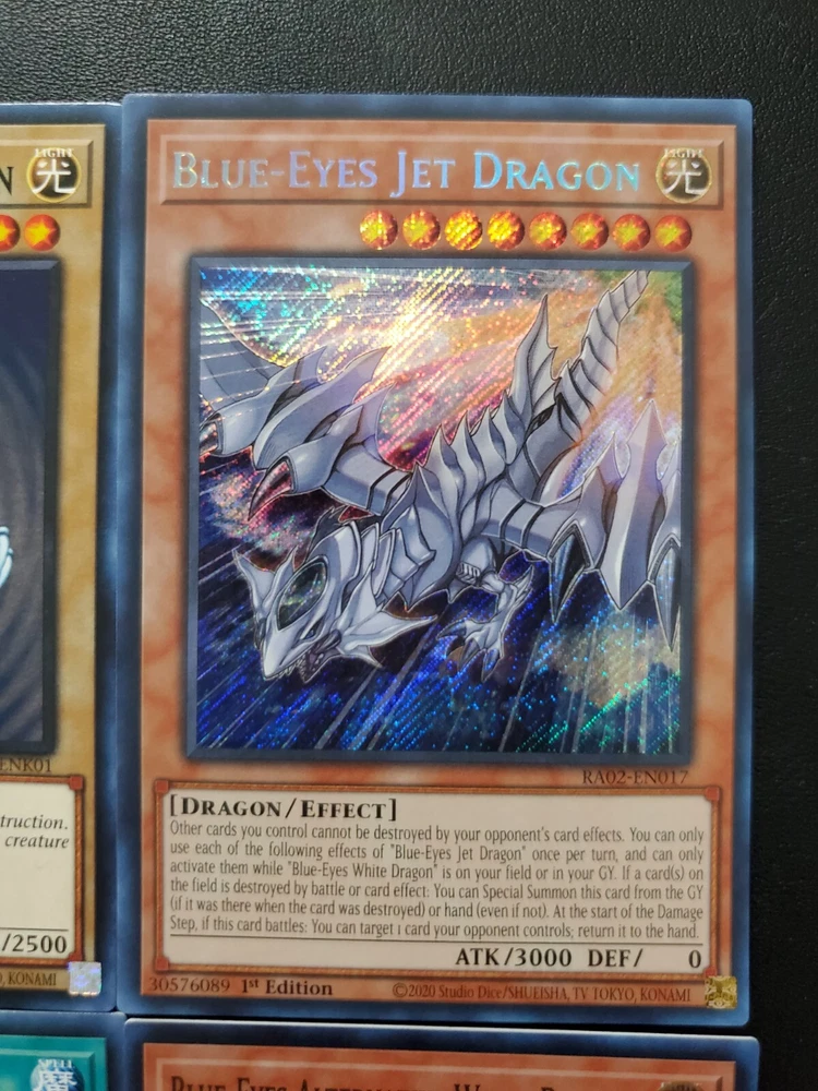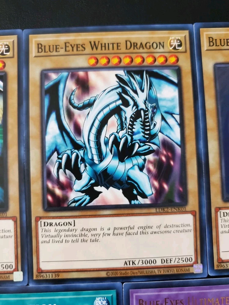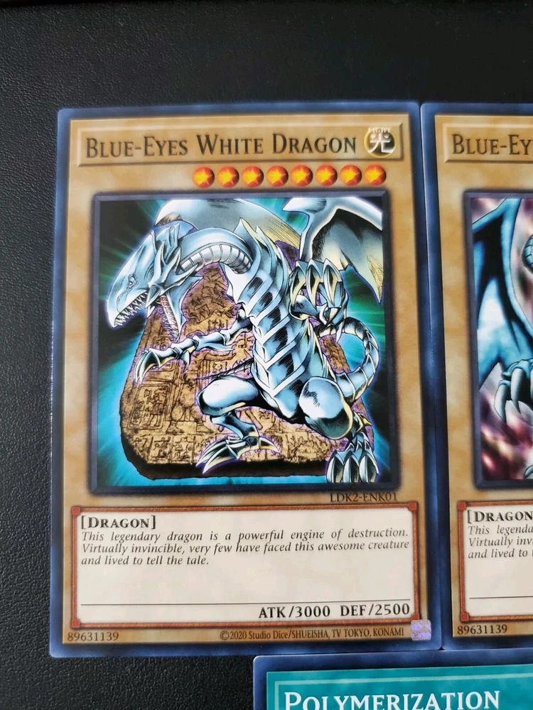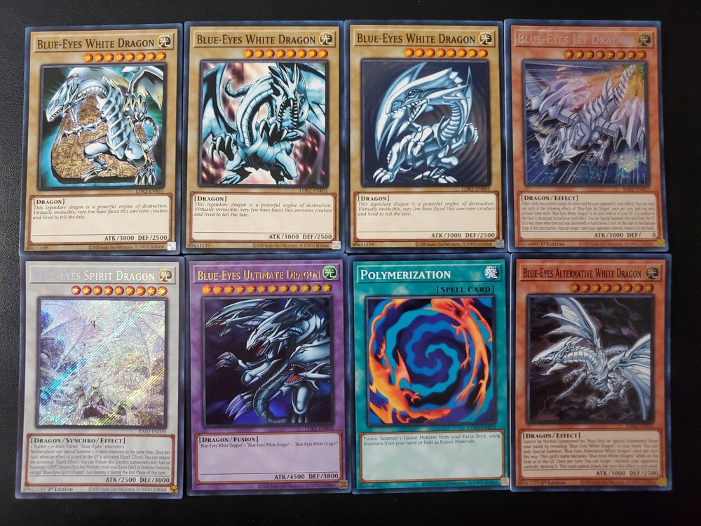 DESCRIPTION Yu-Gi-Oh! BLUE EYES WHITE ULTIMATE DRAGON POLYMERIZATION Item Includes: 3x Blue Eyes White Dragon (Common,LDK2,) 1x Polymerization (Common, LDK2) 1x Blue-Eyes Ultimate Dragon (Ultra Rare, LDK2) 1x Blue-Eyes Spirit Dragon (Secret Rare, Ra02) 1x Blue-Eyes Jet Dragon (Secret Rare, RA02) 1x Blue-Eyes Alternative White Dragon (Super Rare, RA02) SHIPPING We ship up to 3 day after payment, except for holidays and weekend or when the delivery service is not available. FOR UNITED STATES CUSTOMERS: We use First Class for all kind of shipments, this include tracking number and the estimated delivery day is between 3 to 5 days, If you need a faster service send us a Message and we will help you to choose it. FOR INTERNATIONAL CUSTOMERS (outside united states): International shipping prices differ for each country and are calculated automatically by eBay. Tracking information is not available for international buyers beside Canada, once the package leave the US, the buyer have complete responsibility for that shipping. All duties and taxes are the responsibility of the buyer. They are not included in the listed price. Please check with your domestic customs office to determine what your additional costs will be prior to bidding. If you need to combine shipping please send us a message to help you.