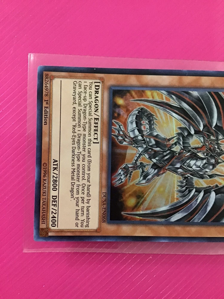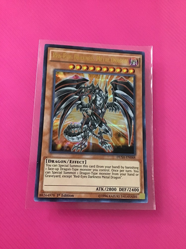 YUGIOH TCG RED-EYES DARKNESS METAL DRAGON DUSA-EN068 ULTRA 1ST EDITION NEAR MINT YOU GET WHATS SHOWN IN THE PICTURE AND DESCRIPTION ALL CARDS ARE SHIP WITH PROECTIONS. ALL CARDS THAT IS BELOW 20$ WELL BE SHIP IN PWE WITH EBAY TRACKING. 24$-21$ CARDS WELL BE WITH STAMPS PWE. CARDS ABOVE 25$ WELL BE SHIP IN BUBBLE MAIL WITH USPS GROUND SHIPPING TRACKING. IF YOUR ORDERS ADDS UP TO 25$ OR ABOVE IT WOULD BE ALSO IN A BUBBLE MAILER. IF YOU ARE FROM PUERTO RICO AND ARE BUYING MAKE SURE YOU HAVE "COUNTRY LIST AS UNITED STATES NOT PRI" OR ELSE I CAN'T PRINT EBAYSHIPPING LABEL WITH TRACKING AND WELL SENT ITEM BY STAMPS TO YOU. THANKS. To international buyers since I have been having many buyers that are using Fright Forward Services. YOU ARE BUYING AT YOUR OWN RISK. As I list in my description, I ship using PWE (Plain White Envelope) for cards that does not reach $25 and above. I do not know how the Fright Services pack it after mailing it to them. All I know is that many of the PWE does not make it to its original destination (your real home address) either it's the Fright Services fault for not packing it in bubble mailer or Usps for losing it in transit. If it is being send by PWE by the Fright Services, it made take months before getting there. Also, in case if its lost or does not make it to its destination you must direct your attention to the Fright Services before contacting me. It is not my responsibly for lost mail(item) due to 3rd party delivery. To make sure you get your cards to you faster and more accuracy you must order cards combining to $25 or above that way I can use Ground Advantage and send it in bubble mailer most of the bubble mailer I use will make it to its destination. Thank you. IF YOU CAN LEAVE FEEDBACKS THAT WOULD BE MUCH APPRECIATE THANK YOU FOR BUYING.
