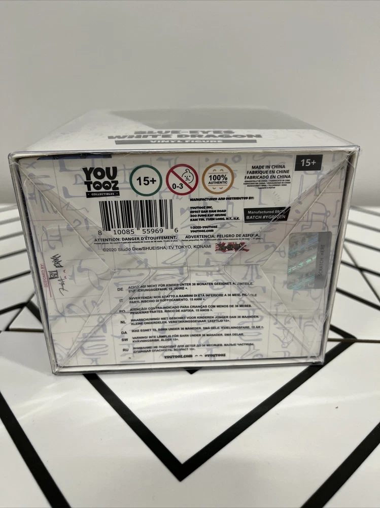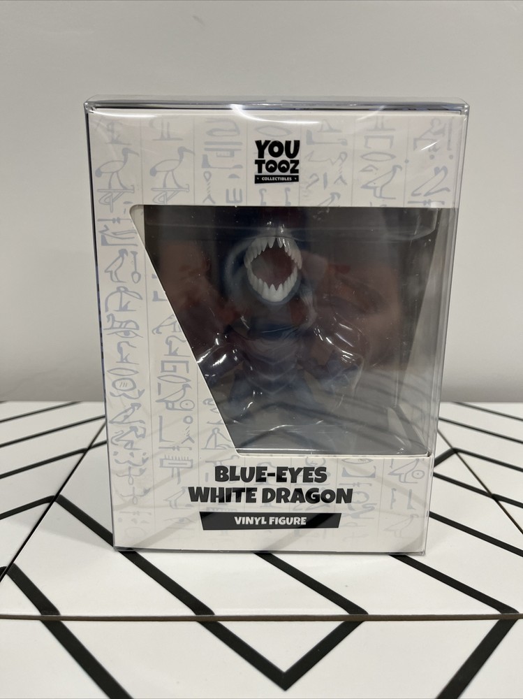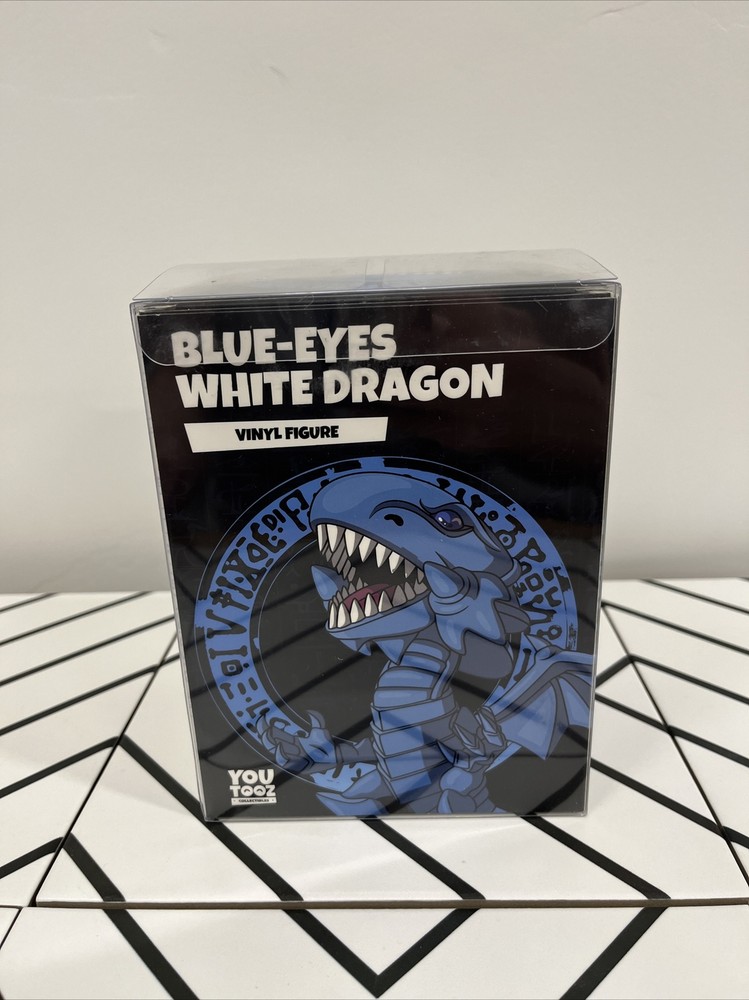 Yu-Gi-Oh! Collection Blue Eyes White Dragon Vinyl Figure #2 : Rampaging into Youtooz, the Blue-Eyes White Dragon makes their fearsome debut! Raising sleek its head high to stand at just over 4-inches tall, it lets out an explosive roar from a sharp fanged mouth which is framed by two thick spikes at its sides. With two large clawed hands reaching upward, sharp pointed wings jut out from a segmented torso as a long tail sweeps down around their spiked feet.