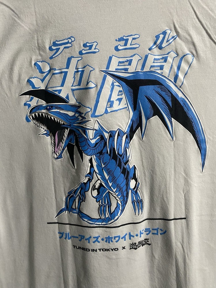 Yugioh / Tuned in Tokyo T shirt White 2XL With Blue Eyes White Dragon on the Back and Yugioh logo in Front.