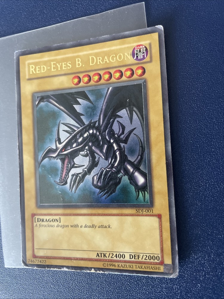 Elevate your Yu-Gi-Oh! TCG collection with the iconic 'Red-Eyes B. Dragon' card from the Starter Deck: Joey series. This ultra-rare foil card, featuring the formidable dragon with 2400 attack power and 2000 defense toughness, is a must-have for players and collectors alike. With its dark attribute, this card adds a menacing edge to your deck, ensuring your opponents feel the heat. Crafted by Konami, the card is numbered SDJ-001 and comes in standard English card stock size. Produced in 1996, the 'Red-Eyes B. Dragon' embodies the unlimited potential of the Yu-Gi-Oh! game, all while remaining ungraded to preserve its authenticity. Add this timeless piece to your collection and experience the legacy of this classic card.