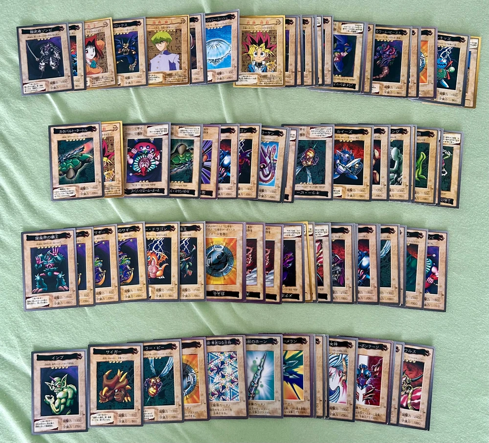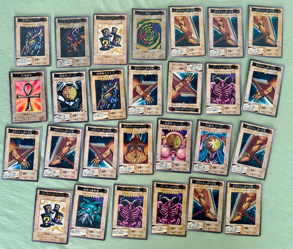 Yu-gi-oh! Bandai 1998-1999 lot more than 1000 cards japanese. (white dragon blue eyes, dark magician, black dragon red eyes, etc..) Card conditions range from played to near mint, but more generally from light play to good. The cards you see in the photos are all the cards you will receive.