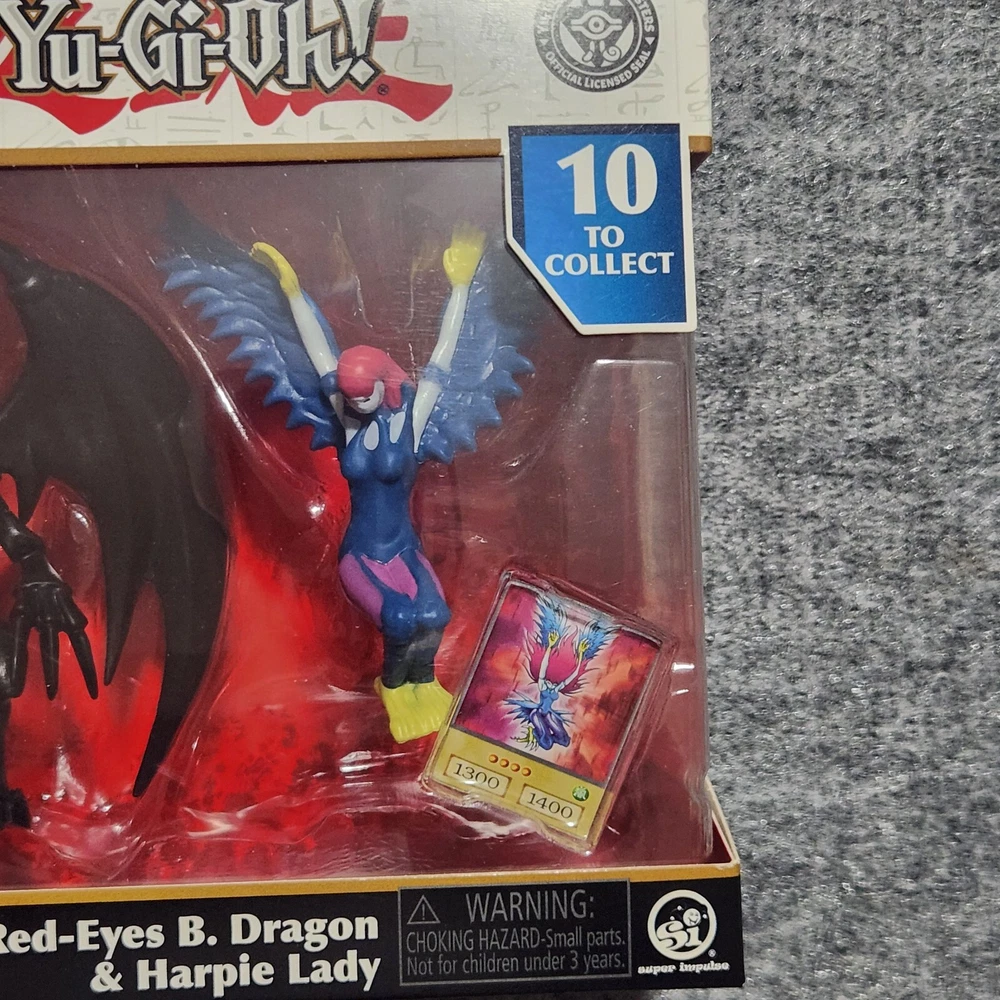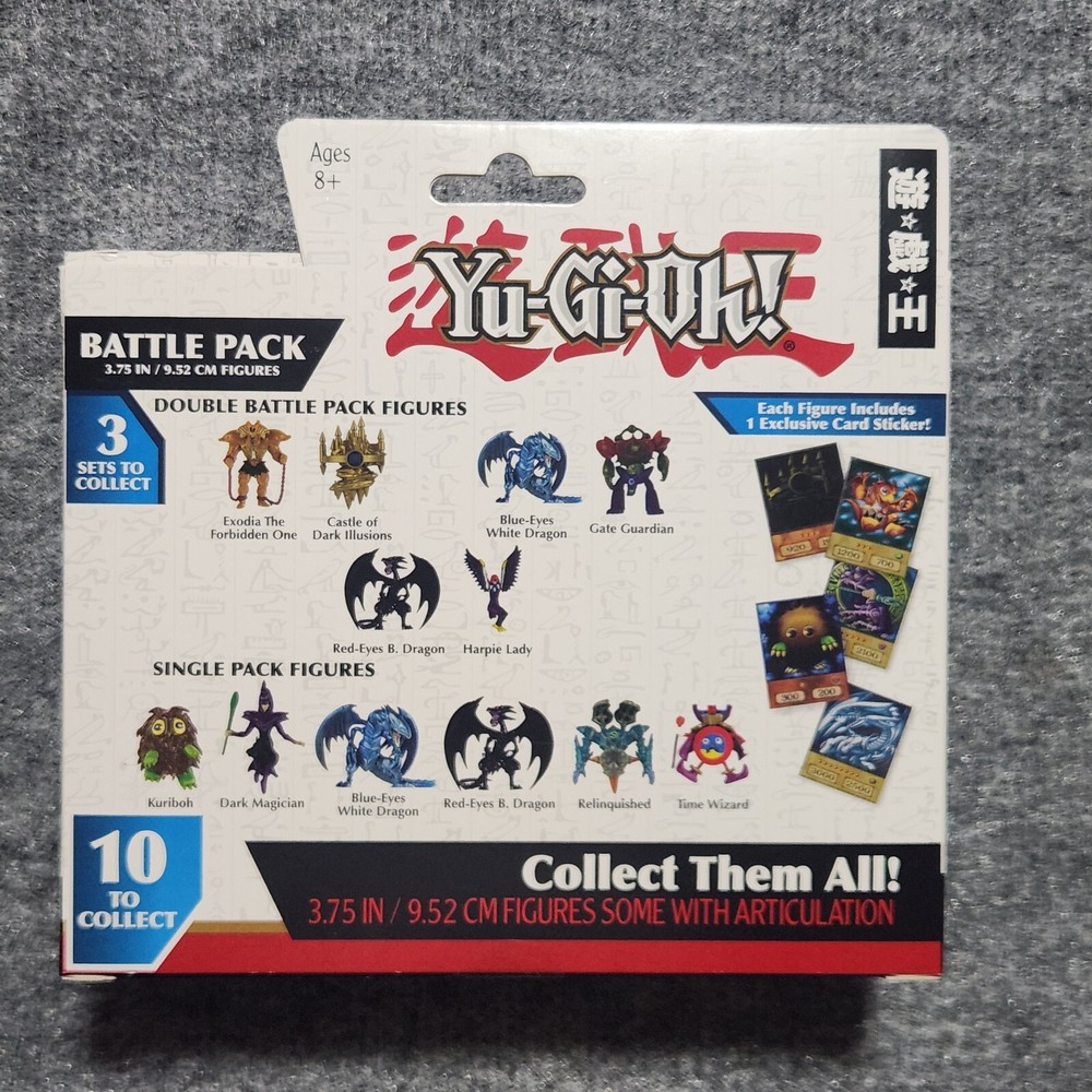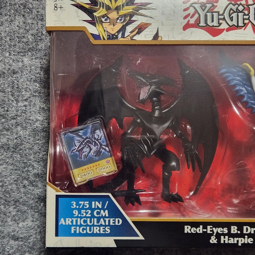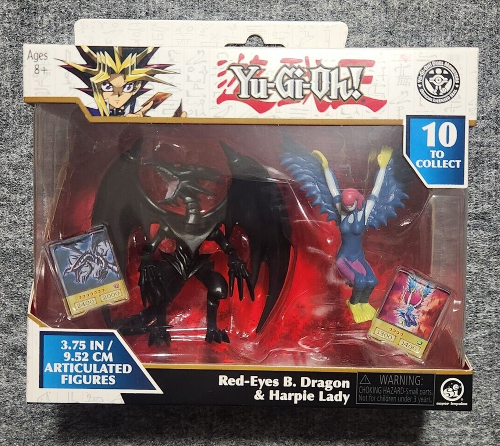 Yu-Gi-Oh! 2 Figure Battle Pack Red Eyes Black Dragon and Harpie Lady 3.75 inch. Includes 2 figures and 2 card stickers. This Yu-Gi-Oh! 2 Figure Battle Pack includes the iconic characters Red Eyes Black Dragon and Harpie Lady, standing at 3.75 inches tall. The figures are made by Character Options and are suitable for ages 8 years and up. The pack weighs 6 ounces and measures 39mm in length, 20mm in width, and 41mm in height. This collectible pack is perfect for fans and collectors of the Yu-Gi-Oh! franchise. The figures are highly detailed and would make a great addition to any collection. The release date for this item is 08/08/2022.