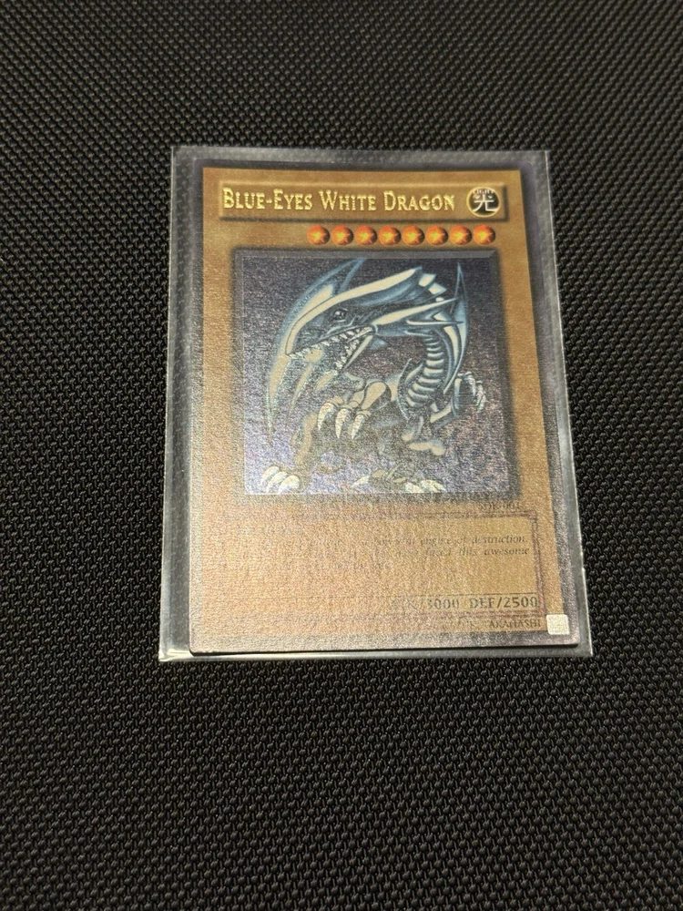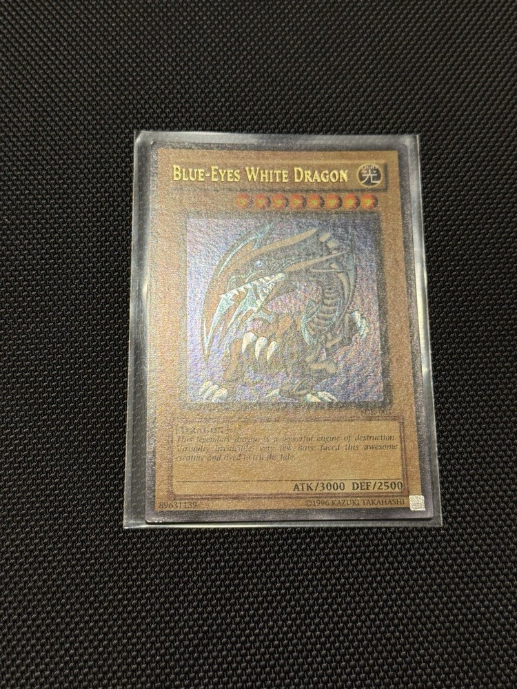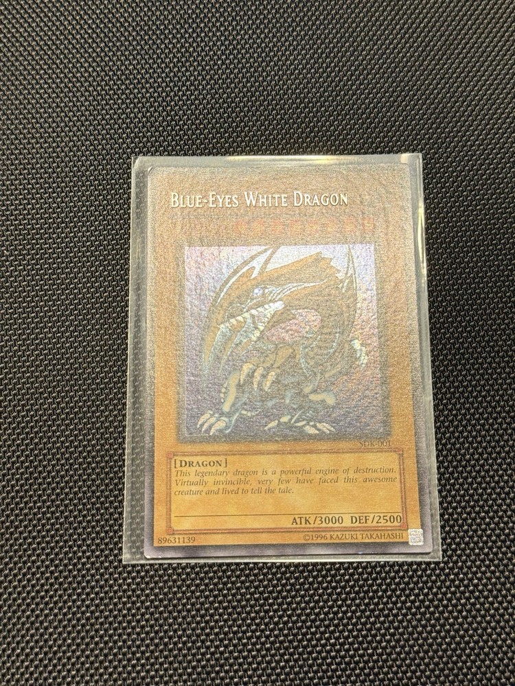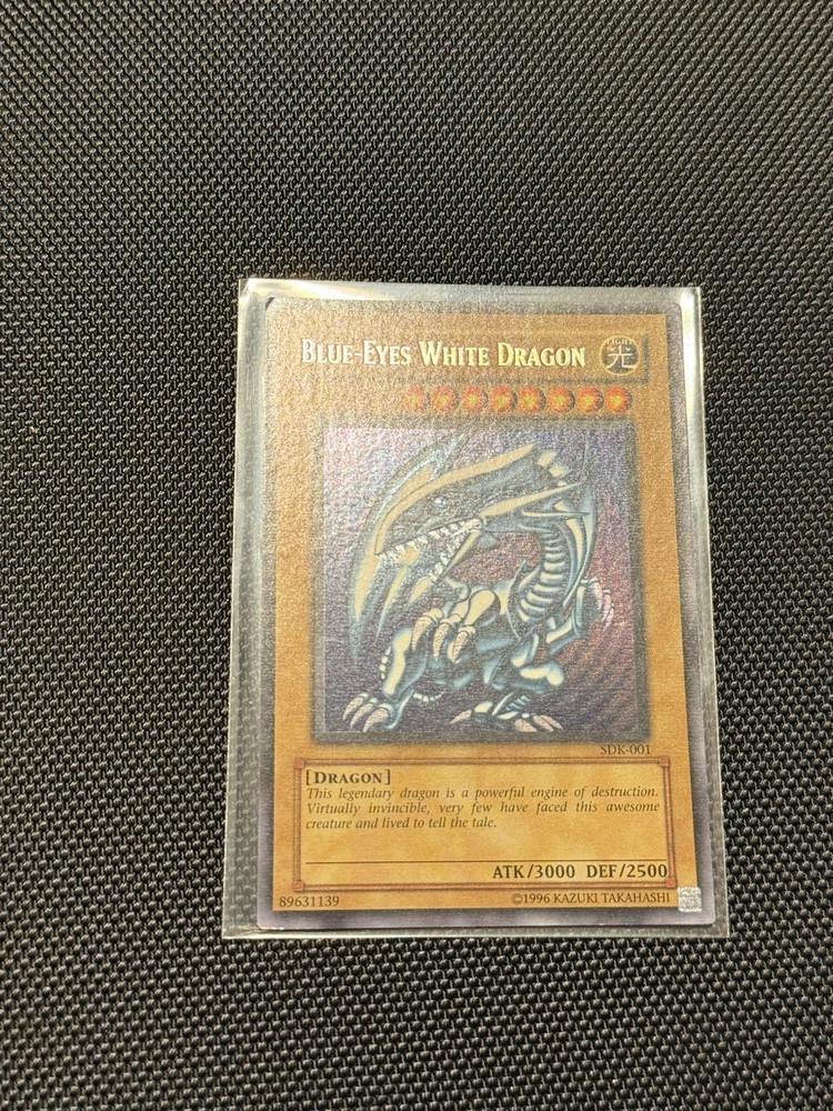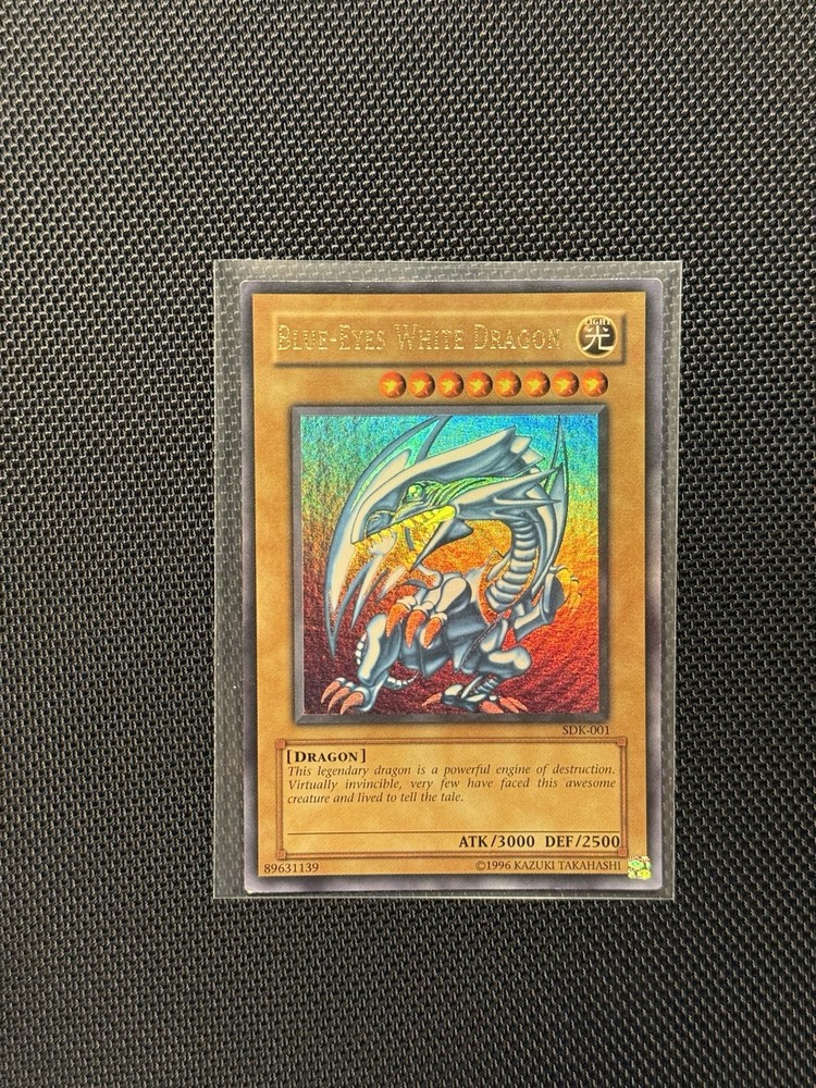 The Yu-Gi-Oh! Blue-Eyes White Dragon SDK-001 is an Ultra Rare card from the 2002 set. This English language card features the iconic character Blue-Eyes White Dragon and is numbered SDK-001. It is made from sturdy card stock and has a Holo finish, making it a highly sought-after collectible for fans of the Yu-Gi-Oh! TCG. As a 1st Edition card from 1996, this Blue-Eyes White Dragon is a valuable addition to any card collection.