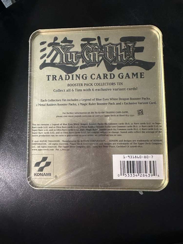 Uncover the nostalgia with the Yu-Gi-Oh! 2002 Collector's Tin, featuring the iconic Seto Kaiba and the formidable Blue-Eyes White Dragon. This limited edition set is a treasure for enthusiasts and collectors alike, taking you back to the dawn of the Yu-Gi-Oh! trading card game. The tin is crafted from durable aluminum and showcases the Dark attribute, fitting seamlessly into any existing collection. Included in this set is the coveted 'Acid Rain' card, among other powerful cards that are sure to enhance your gameplay or display. With its Secret Rare rarity and English language, this collector's item is a must-have for fans who appreciate the early days of Yu-Gi-Oh! Celebrate Anime Expo memories and add a piece of history to your collection today.