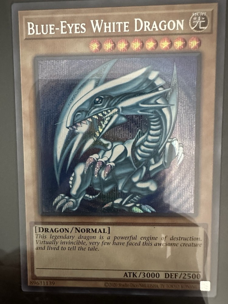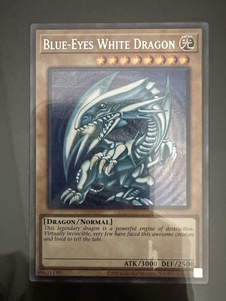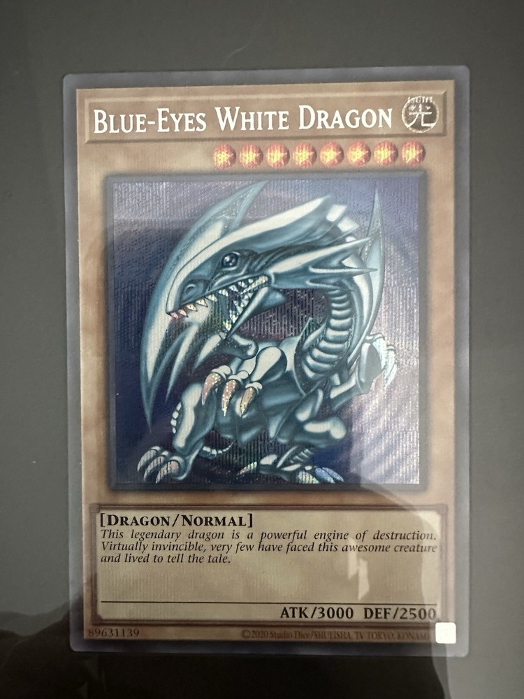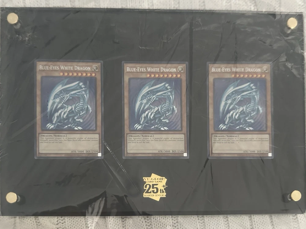 3 Blue-Eyes White Dragon cards in the plaque from the Kaiba briefcase (briefcase not included) The product is a Yu-Gi-Oh! card set featuring the Blue-Eyes White Dragon from the 25th Anniversary Ultimate Kaiba Set. This card has a light attribute, with a defense/toughness of 2500 and an attack/power of 3000. It is a Prismatic Secret Rare card, manufactured by Konami and part of the Yu-Gi-Oh! TCG game. The card is in near mint condition or better, suitable for collectors and players alike. I’ve been a YuGiOh player and collector since I was a kid. I’m selling a few cards to help pay for my wedding later this year! Thanks for taking a look and feel free to reach out with any questions.