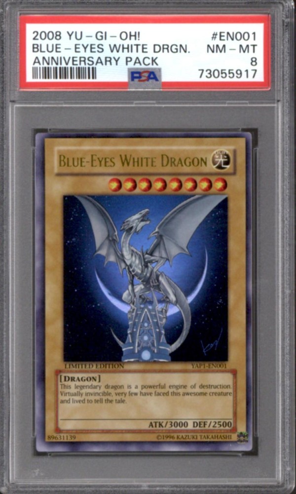 Leading the Collectibles Industry for Over 30 Years Leading in the Collectibles Industry for Over 30 Years Store Home Bookmark Us Feedback Contact Us MENU Store Categories Sports Trading Cards Autographs Vintage Sports Memorabilia Toys & Hobbies Comic Books & Memorabilia Autographs Non-Sports Trading Cards Collectible Figures & Supplies Animation Art & Merchandise Video Games & Consoles Entertainment Memorabilia Coins & Paper Money Store Support Store Home Bookmark Us View Our Feedback Contact Us Store Categories Sports Trading Cards Autographs Vintage Sports Memorabilia Toys & Hobbies Comic Books & Memorabilia Autographs Non-Sports Trading Cards Collectible Figures & Supplies Animation Art & Merchandise Video Games & Consoles Entertainment Memorabilia Coins & Paper Money Fast, Secure Shipping Satisfaction Guaranteed Hassle-Free 30-Day Returns Friendly, Expert Buyer Support Click Thumbnails to Enlarge Product Description Yu-Gi-Oh Anniversary Pack Blue-Eyes White Dragon YAP1-EN001 PSA 8 Yu-Gi-Oh Anniversary Pack Blue-Eyes White Dragon YAP1-EN001 PSA 8 Questions about this item? Click here to contact us! » Payment Payment Policy If payment is not received within 7 days, we reserve the right to cancel the transaction and relist the item. For larger credit card orders, proof of identity may be required. International credit cards are NOT accepted. Based on applicable tax laws, eBay will calculate and collect sales tax for items shipped to customers in the United States Shipping Shipping Policy For the Shipping Rate Calculator, click the "Shipping and payments" tab at the top of this listing Most orders process within one business day after we receive payment. Orders are packed securely and shipped promptly. Most cases are double-boxed to avoid damage in transit. We offer combined shipping discounts for customers who win more than one auction within 3 days of each other and pay for all items at the same time (please contact us in advance for exceptions). If the shipping charge at check-out doesn't seem right, please use the "Ask Seller for Invoice" option before paying. Orders shipping to P.O. Boxes, APO , and FPO must ship via the U.S. Postal Service. Orders going to Alaska, Hawaii, Puerto Rico, and other US Territories are subject to a $15.00 shipping surcharge. Local Pick-Up may be available in Western NY for free; contact us prior to bidding. Intl. Shipping International Shipping For items shipping via the eBay Global Shipping Program, please refer to their information located here Due to contractual agreements with Upper Deck, Konami, and Wizards of the Coast, items manufactured by Upper Deck are not eligible for shipping to Canada until one (1) calendar year after the products initial release. Items manufactured by Konami and Wizards of the Coast (WOTC) are not eligible for shipping outside of the United States and its' territories. We are sorry for any inconvenience. Any duties or taxes that may be imposed by the respective countries are your sole responsibility. Import duties, taxes, and charges are NOT INCLUDED in the item price or shipping charges. These charges are the buyer's responsibility. Please check with your country's customs office to determine what these additional costs will be prior to bidding / buying. These charges are normally collected by the delivering freight (shipping) company or when you pick the item up, do not confuse them for additional shipping charges. Also do not request us to declare items at a lower value, it is not an option, as it is illegal in the United States. Mail fraud, a felony, carries a sentence of up to five years in prison and/or fines of up to $250,000. We ship most orders via UPS. Orders shipping via UPS should arrive within a week after we receive payment. About Us About Dave & Adam’s Card World When you shop with Dave and Adam's Card World, rest assured knowing that you are dealing with an established business, the best in the industry. The world's largest source of trading cards and collectibles In business since 1991 Accredited by the Better Business Bureau BizRate Platinum Circle Of Excellence Honoree for outstanding Customer Service 50,000 square-foot custom facility with over 60 people on staff We supply thousands of customers, including many stores, dealers, and collectors...let us help you as well! We are recognized throughout the industry for... Great Prices Factory-Sealed Unsearched Product Unbeatable Customer Service Fast Shipping Dave and Adam's Card World, LLC Fast, Secure Shipping Satisfaction Guaranteed Hassle-Free 30-Day Returns Friendly, Expert Buyer Support Shop By Category Sports Trading Cards Autographs Vintage Sports Memorabilia Toys & Hobbies Comic Books & Memorabilia Autographs Non-Sports Trading Cards Collectible Figures & Supplies Animation Art & Merchandise Video Games & Consoles Entertainment Memorabilia Coins & Paper Money Store Home Bookmark Us View Our Feedback Contact Us Copyright © Dave & Adam's Card World . All rights reserved. eBay Template Design NinjaTemplates