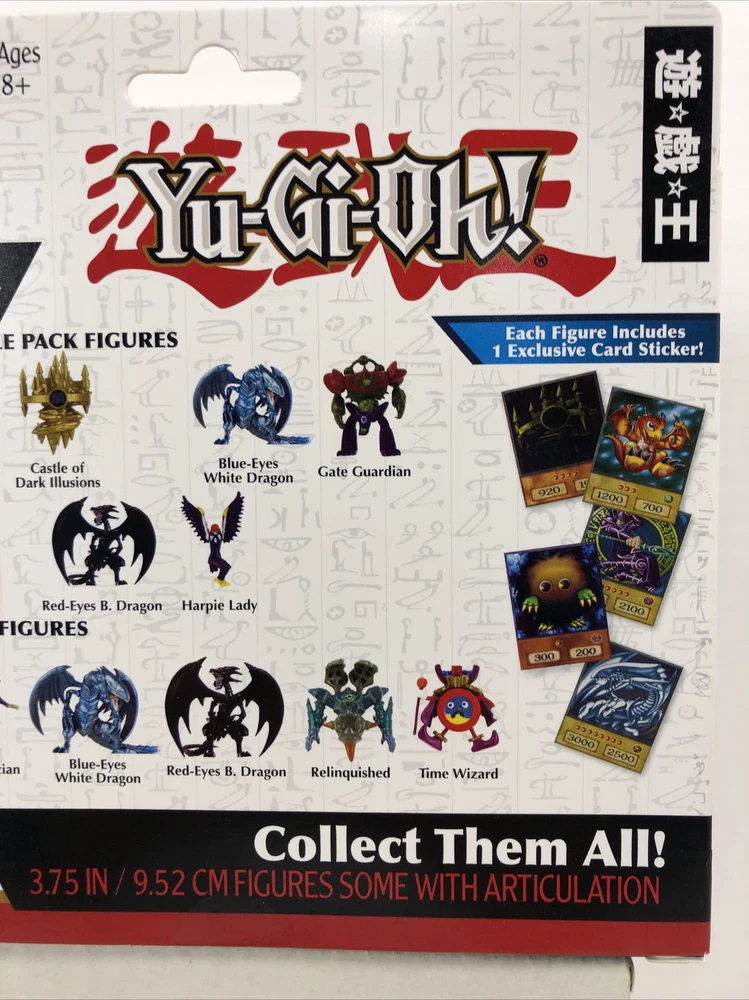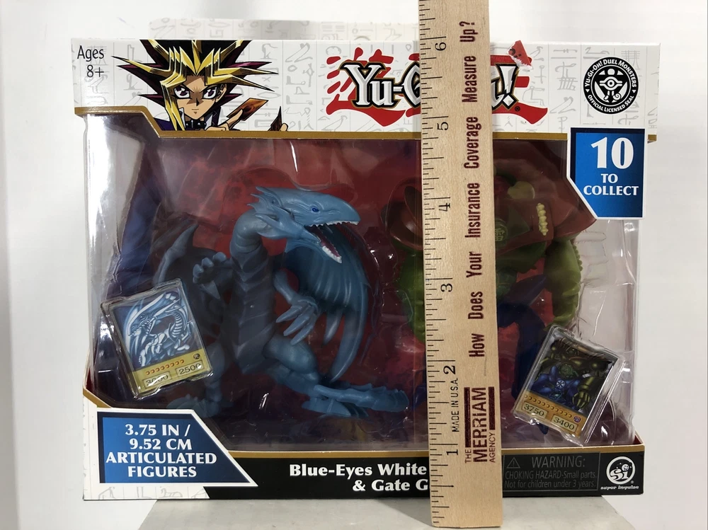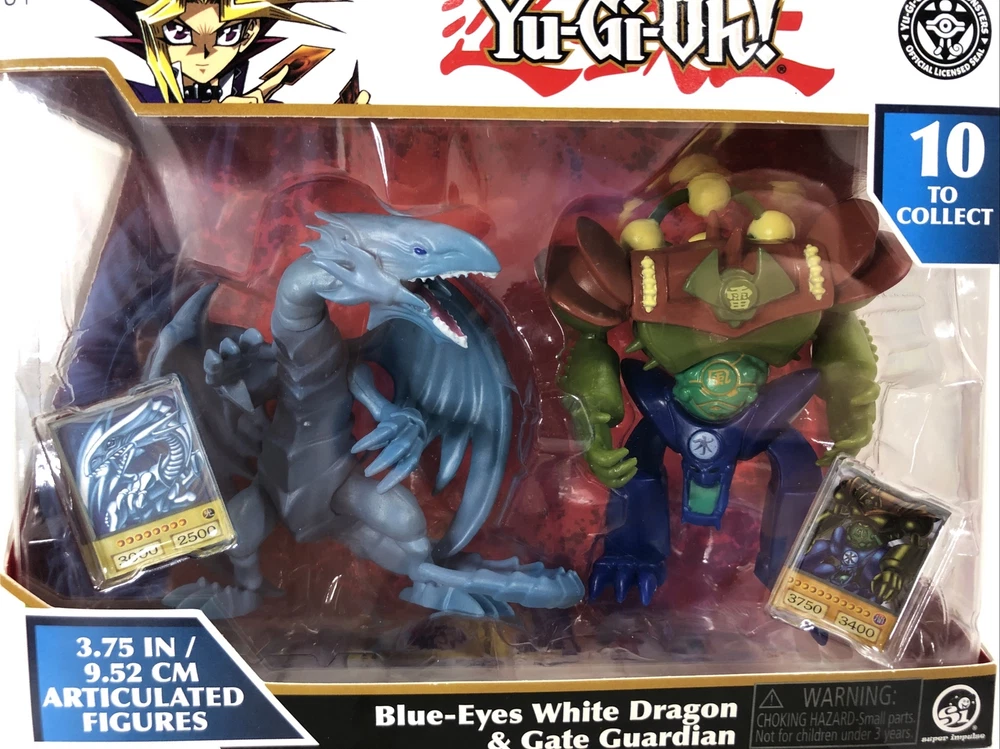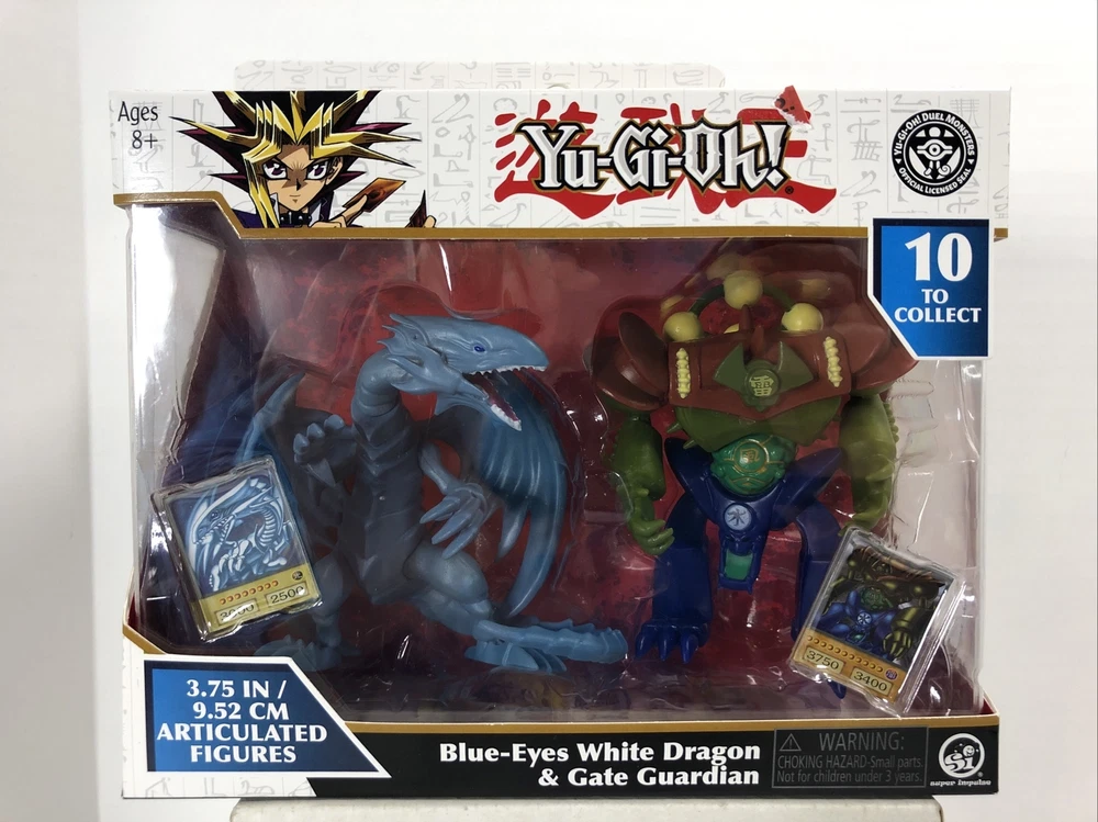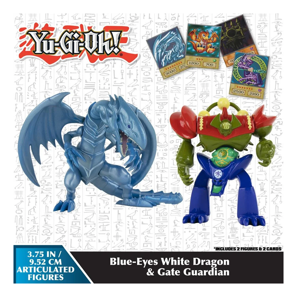 Yu-Gi-Oh! 3.75-Inch Articulated Figures Blue-Eyes White Dragon & Gate Guardian Get your duel on! The incredibly successful Yu-Gi-Oh brand is celebrating its 25th Anniversary with a new collection launching worldwide! Expanding on its success in the trading card and anime category, Yu-Gi-Oh are proud to introduce a collection of beautifully sculpted figures for fans of all ages to collect. Yu-Gi-Oh 3.75 Inch figures are highly detailed and articulated. A rare and exclusive card is also included in each pack. Each card is unique to the character. Set includes 3.75 Inch Blue-Eyes White Dragon and Gate Guardian. Blue-Eyes White Dragon is a character version of the card, Blue-Eyes White Dragon. Although the duel monster's card is powerful in its own right, the actual monster spirit is incredibly powerful, being one of the most powerful monsters in the Yu-Gi-Oh! universe. Blue-Eyes White Dragon was the monster ka spirit of Kisara. Despite being always called Blue-Eyes White Dragon, or even simply just the White Dragon, Blue-Eyes always has a light blue body as well as blue eyes. Later card designs also clearly showed the dragon to be blue rather than white. Gate Guardian appears as one of the Theme Duel opponents; it challenges the player to defeat it after first Summoning the Gate Guardian by its own effect during the Duel. Get your duel on! The incredibly successful Yu-Gi-Oh brand is celebrating its 25th Anniversary with a new collection launching worldwide! Expanding on its success in the trading card and anime category, Yu-Gi-Oh are proud to introduce a collection of beautifully sculpted figures for fans of all ages to collect. Yu-Gi-Oh 3.75 Inch figures are highly detailed and articulated. A rare and exclusive card is also included in each pack. Each card is unique to the character. What's Included? 2 x Articulated Figures 2 x Miniature Cards Safety Information: Suitable for ages 8+. Small parts may be generated, choking hazard. FAST Shipping. Shipping: Items are shipped as fast as possible after payment. I pride myself on getting your purchase to you FAST! Return Policy: All items qualify for returns within 30 days of receipt. Feedback: I take my reputation seriously, I buy and sell online, so I understand the value of trust. If you are unsatisfied with your order, please contact me and I will work with you to resolve the issue to your satisfaction. Customer First!