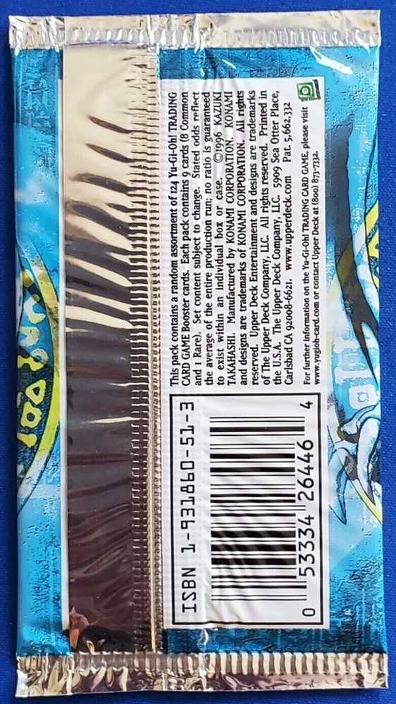 THESE PACKS HAVE NOT BEEN WEIGHED OR SEARCHED 1 YU-GI-OH BLUE EYES WHITE DRAGON UNLIMITED EDITION BOOSTER PACK, FRESH FROM BOX FREE SHIPPING Up for sale are 1 Factory Sealed Unlimited Edition English Yu-Gi-Oh! Blue Eyes White Dragon booster pack, straight from a mint box. Each pack is mint, brand new and still factory sealed. Made by Upper Deck, this pack has 9 cards in each pack. There are 8 common cards and 1 rare card in each pack. There are 124 different cards in the complete set. There are 82 different Commons in the set and the odds of finding Commons are (8:1). There are 22 Rares in the set and the odds of finding them in a pack are (1:1). There are 10 Super Rares in the set and the odds of finding them in a pack are (1:6). There are10 Ultra Rares in the set and the odds of finding them in a pack are (1:12). SHIPPING, INSURANCE, AND PAYMENT INTERNATIONAL BIDDERS, PLEASE CHECK SHIPPING CALCULATOR FOR SHIPPING CHARGES WHICH WILL INCLUDE INSURANCE. Shipping is FREE inside the USA and will be shipped via USPS Mail with FREE DELIVERY CONFIRMATION. I accept only Paypal (due to new Ebay regulations.)
