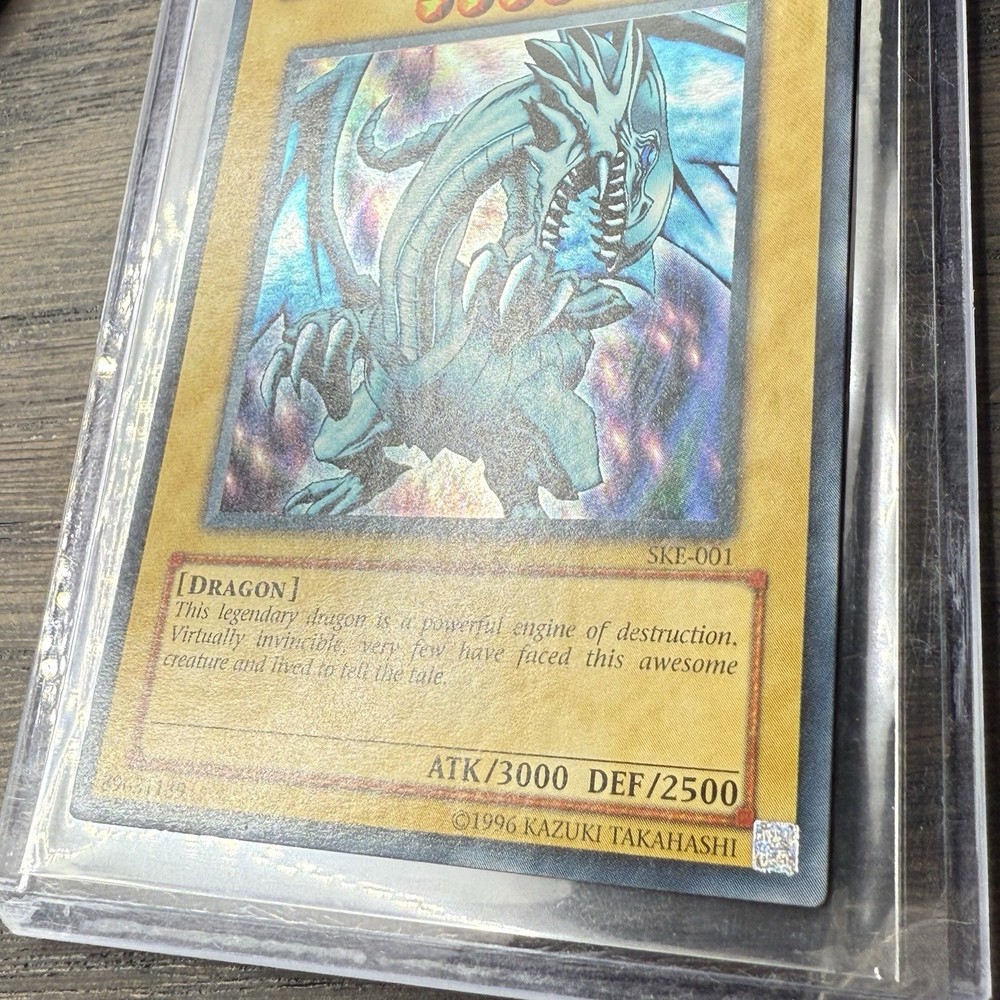 The Yu-Gi-Oh! Blue Eyes White Dragon SKE-001 card is a Super Rare 1st edition collectible from the Kaiba Evolution set. Manufactured in 2004 by Konami, this English-language card features the iconic Blue Eyes White Dragon character illustrated by Kazuki Takahashi. With a foil finish and holo design, this vintage card is a sought-after piece for collectors and players of the Yu-Gi-Oh! TCG.