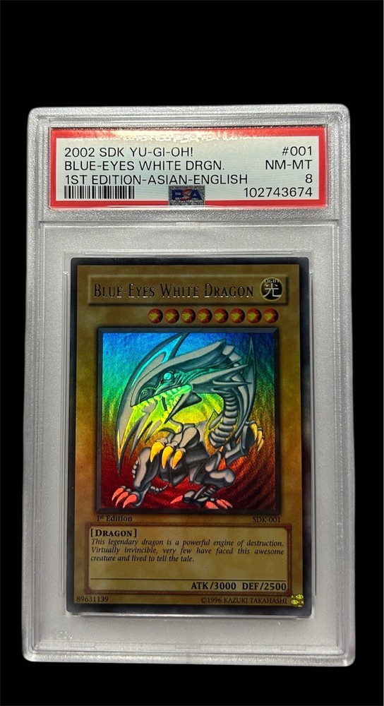 You're purchasing Yu-Gi-Oh BLUE-EYES WHITE DRAGON 1ST SDK-001 ASIAN ENGLISH PSA 8 F/S Shipping Information: I will send the item via registered air mail with a tracking number.Shipping time will takes 2-5 weeks pending on your country. International Buyers:The item in the picture will be the item you will receive.For international buyers, please note that import duties, taxes, and charges are not included in the item price or shipping cost. These charges are the buyer's responsibility. Yu-Gi-Oh! Trading Card Game
