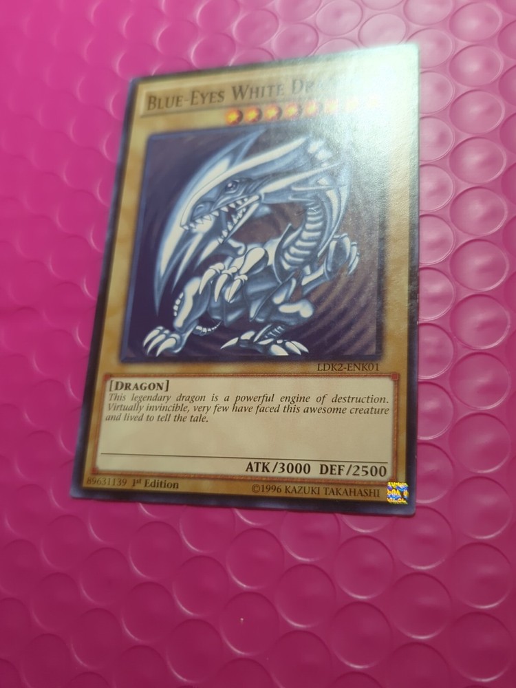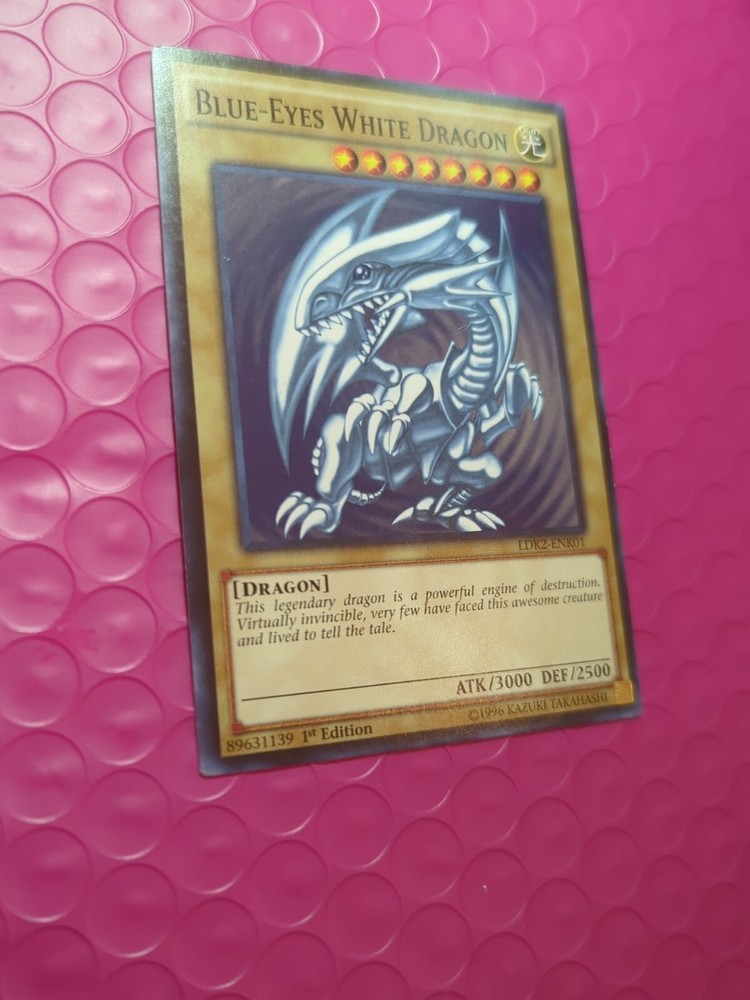 Yu-Gi-Oh! BLUE-EYES WHITE DRAGON LDK2-ENK01 1st Edition NM. The condition of this card is: Near mint *All cards sold will be inside of a penny sleeve and top load card holder. Packaging will be in a bubble envelope for extra protection.* **In an attempt to empty my collection, every order will come with a gift of additional sleeved cards of various conditions that may fit the theme/archetype (depending on what's remaining in my collection). The bigger the sale, the bigger the gift!**