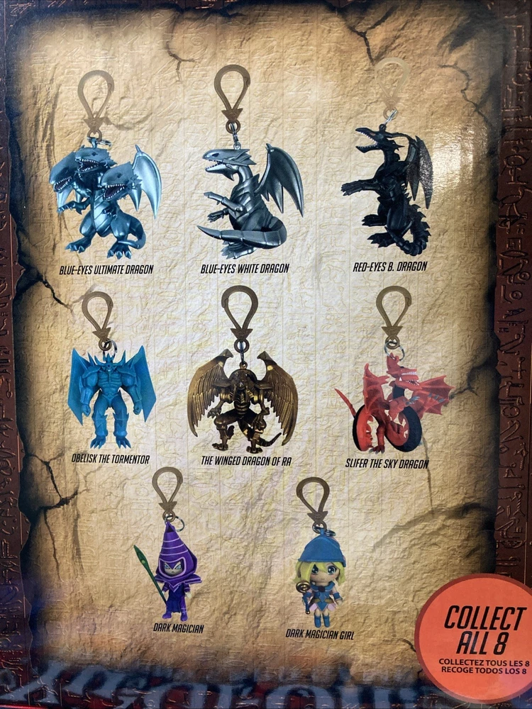 The Yu-Gi-Oh! Backpack Hanger Keychain is a collectible item featuring popular characters from the Yu-Gi-Oh! animated series. This mystery sealed pack contains a keychain with a blind bag design, perfect for fans of the franchise. Made of plastic and multicolored, this keychain is a unique addition to any anime or manga collection, featuring iconic characters such as Blue Eyes White Dragon, Dark Magician, and Slifer the Sky Dragon. With a compact size and a weight of only 0.6 oz, this keychain is ideal for showcasing on backpacks or keychains for any Yu-Gi-Oh! enthusiast.