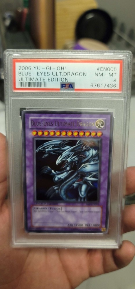 Yu-Gi-Oh 2006 Blue Eyes Ultimate Dragon Limited/Ultimate Edition JMP-EN005 PSA 8. Condition is Used. Shipped with USPS First Class