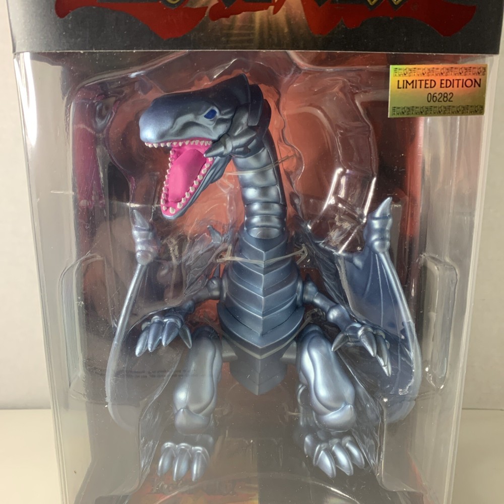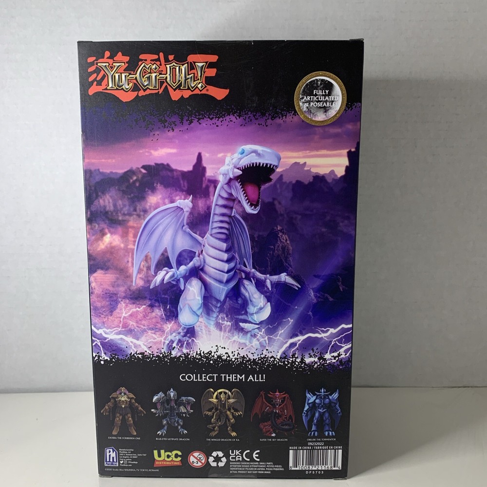 The Yu-Gi-Oh! Blue Eyes White Dragon Action Figure is part of the Limited Edition Series 1 by PhatMojo. This 1:12 scale plastic figure features the iconic character Blue Eyes White Dragon from the Yu-Gi-Oh! franchise. The action figure is designed as an Animator Doll model, representing the TV show and movie theme. It is a collectible item suitable for ages 14 and up, showcasing intricate details and boxed packaging for display.