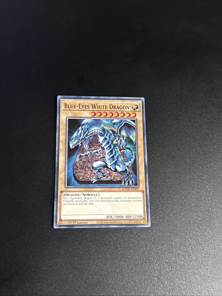 Dive into the world of strategic dueling with the iconic Yu-Gi-Oh! Blue Eyes White Dragon First Edition card. A staple for collectors and players alike, this Ultra Rare dragon card boasts a striking blue and white color scheme that's sure to ignite the imagination of any Yu-Gi-Oh! TCG enthusiast. Published by Konami, this card is a must-have for those looking to enhance their gameplay or round out their collection with a touch of nostalgia. Crafted from premium card stock, the Blue Eyes White Dragon card is a testament to the enduring legacy of the - Yugi - set. This non-autographed, normal type card has not been graded, allowing you to appreciate its raw, unfiltered power. Whether you're gearing up for a tournament or simply treasuring a piece of Yu-Gi-Oh! history, this card is an exemplary addition to any deck or display.