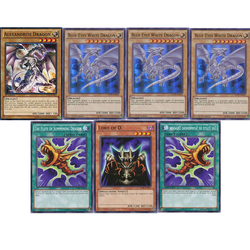 3 ULTRA RARE BLUE EYES WHITE DRAGON MVP1 1 ALEXANDRITE DRAGON COMMON 1 LORD OF D. COMMON 2 FLUTE OF SUMMONING DRAGON COMMON Ultra Rare blue eyes Payment All orders are shipped within 1-2 business days after full payment is received. Please ensure that your eBay & PayPal addresses match correctly and are up to date. REAGOODEAL uses USPS, UPS, FEDEX services to ship. Shipping Options: Single Cards Only Domestic Shipping Options (United States Only) First Class Mail Envelope (about 3-7 days, no tracking): FREE SHIPPING First Class Mail Bubble Envelope w/Delivery Confirmation (about 3-5 days): FREE SHIPPING FEDEX 2nd Day Shipping (2 Bussiness Days not including handling time): $9.95 USPS Overnight Express Mail (For A.M. Order before 2 PM EST): $24.95 Combining multiple auction winnings: We combine shipping charges for multiple auction winnings that fall within 1 day of each other. Reminder messages are automatically sent through our invoicing system for payments outstanding. ***ATTENTION INTERNATIONAL CUSTOMERS*** In order to match the shipping cost please request an invoice Customers of eBay must checkout! Realgoodeal is not responsible for any International customs, taxes, fees, etc. It’s the buyer’s full responsibility. If you have a request, please contact us before ordering. Thank you for choosing us