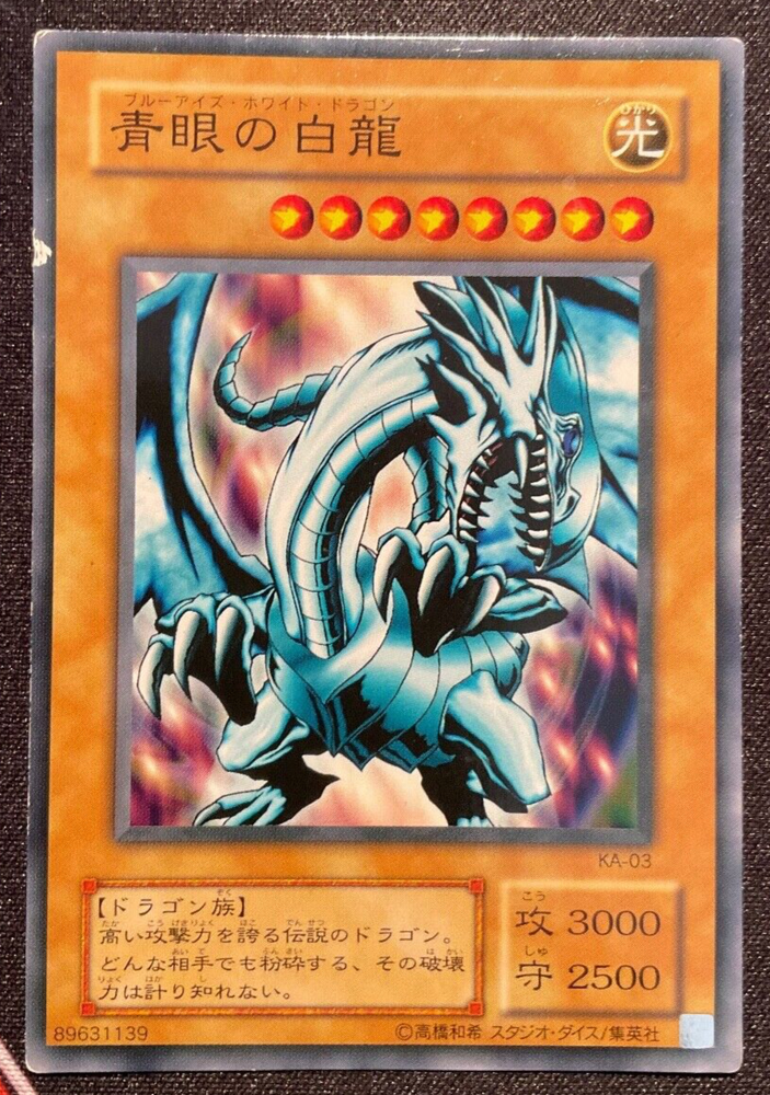 YuGiOhBlue Eyes White Dragon - Japanese KA-03 LP Card condition is lightly played. Good overall, but there is a mark on the upper left face border. Please see photographs for more detail, as the card in the images is the exact card you will receive.