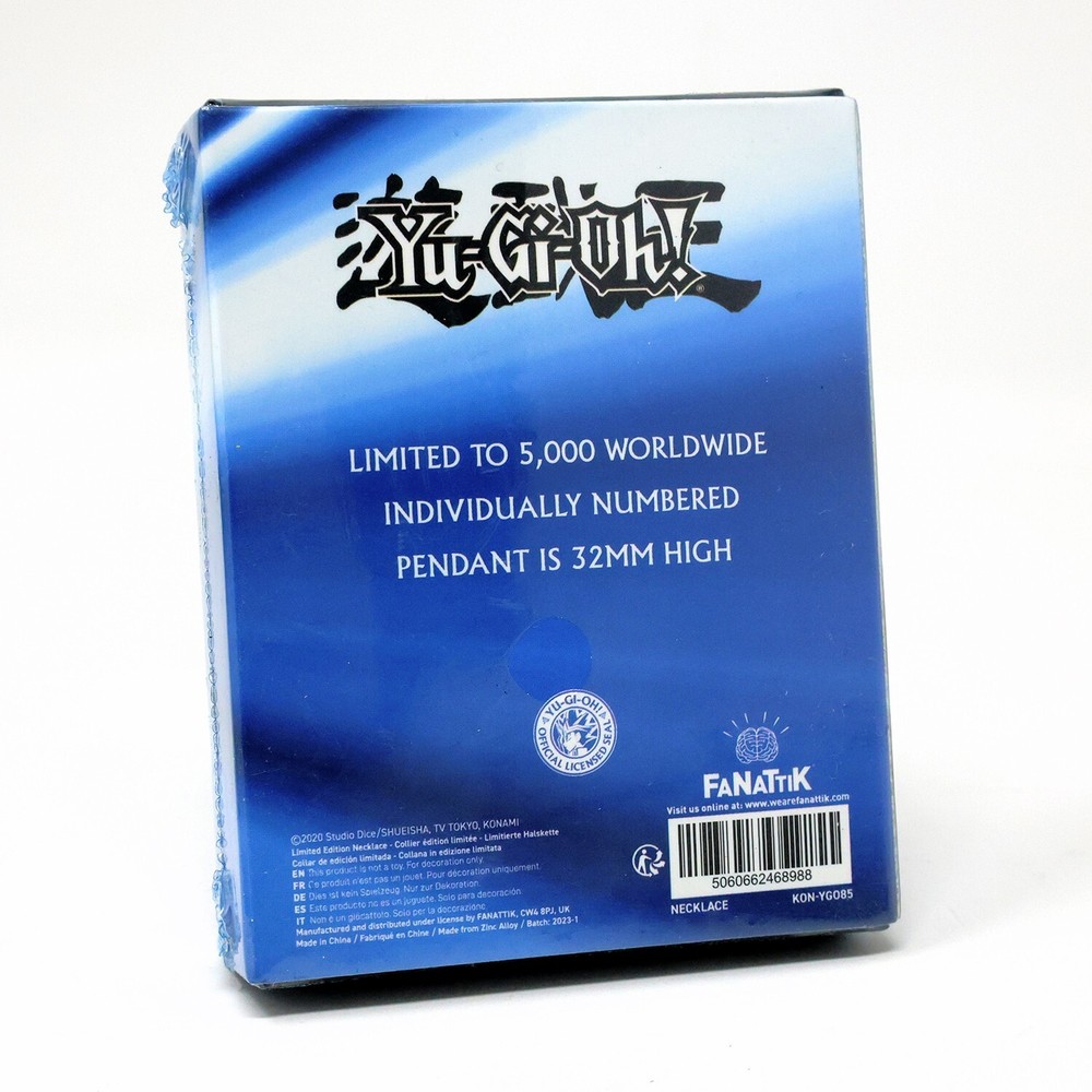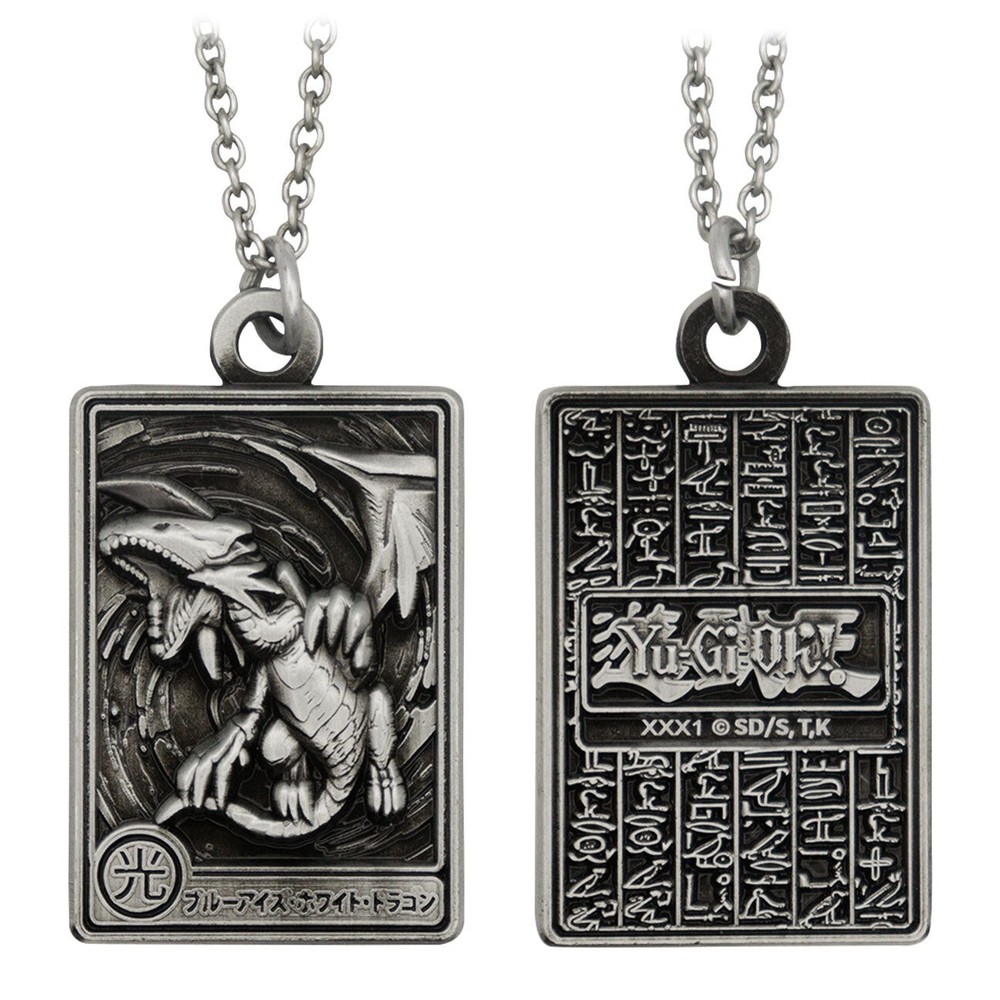 Yu-Gi-Oh! Blue-Eyes White Dragon Necklace Keep this formidable ally close to your chest with this limited edition Blue Eyes White Dragon Necklace! Considered to be one of the most powerful monsters in the Yu-Gi-Oh! universe, you can now unify your love for this fearsome warrior with our officially licensed pendant necklace. Finished with an antique nickel and heavily embossed design, the pendant measures 22 x 32mm and is limited to 5,000 worldwide. Each necklace is individually numbered and is complete with a smart presentation box.