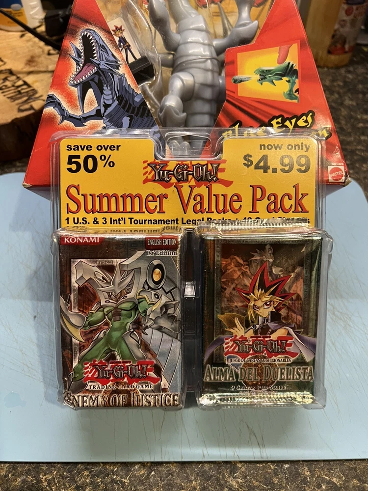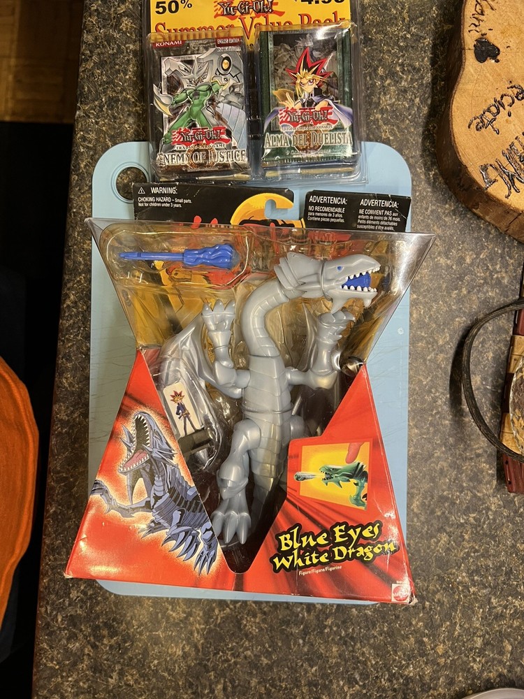 This Yu-Gi-Oh! TCG pack includes a rare Blue Eyes White Dragon card and four additional cards. The set is from the Yugi era and is unopened. The manufacturer is Dragon. This pack is perfect for collectors and players alike. The cards in this pack are sure to enhance any collection or deck. The Blue Eyes White Dragon card is a must-have for any fan of the game. This pack is a great addition to any collection or a perfect gift for a Yu-Gi-Oh! enthusiast.