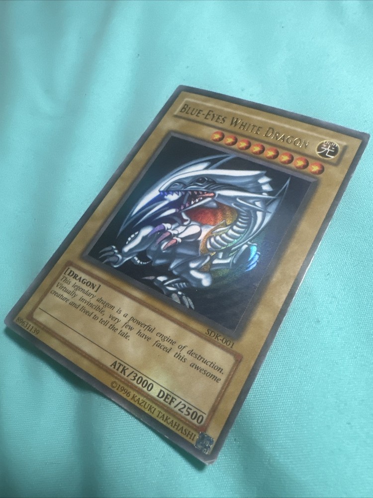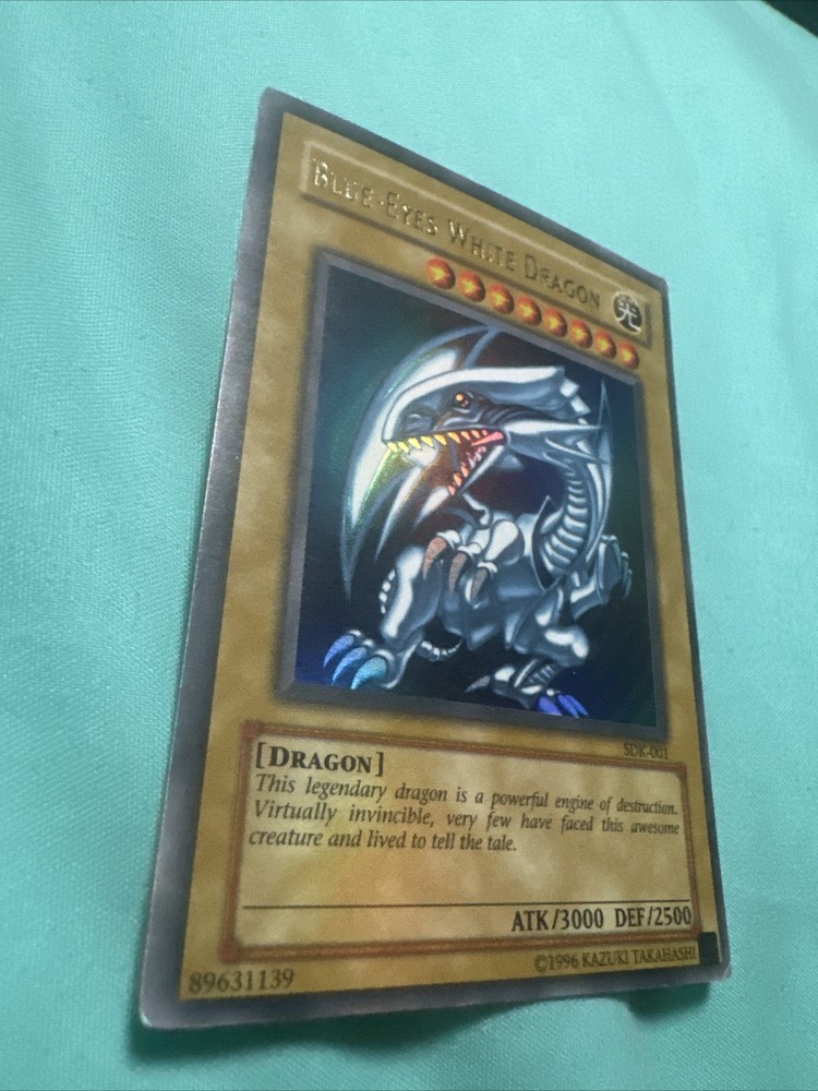 The Blue-Eyes White Dragon (SDK-001) is a highly sought-after Ultra Rare card from the Yu-Gi-Oh! trading card game. Known for its high attack power of 3000 and defense of 2500, this vintage card was released in the starter deck Kaiba in 2002. Illustrated by Yunivers Hseih, it features a holographic finish and is part of the White, Blue, and Light color attribute category. As a powerful Dragon type creature, this card is a valuable addition to any Yu-Gi-Oh! collection, especially for fans of the iconic character and monster.