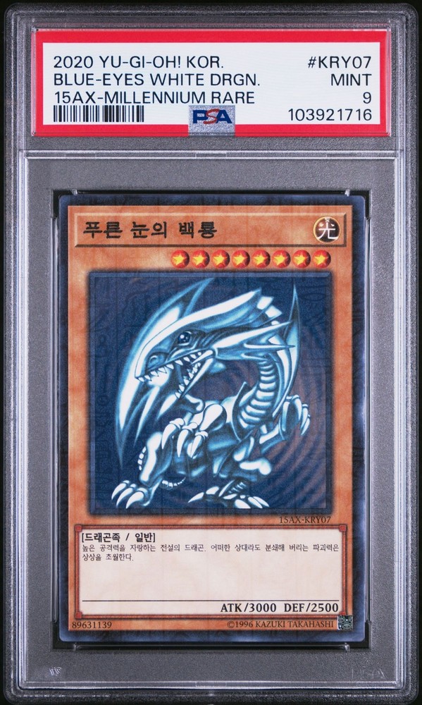 This Blue-Eyes White Dragon Millennium Rare is a stunning collector's piece! The PSA 9 grade ensures top-notch condition, and the holographic finish makes it pop. A must-have for Yu-Gi-Oh! fans—rare, beautifully preserved, and straight from Duelist Road. The scans match the actual card perfectly, so you know exactly what you're getting. Absolutely worth adding to any serious collection!