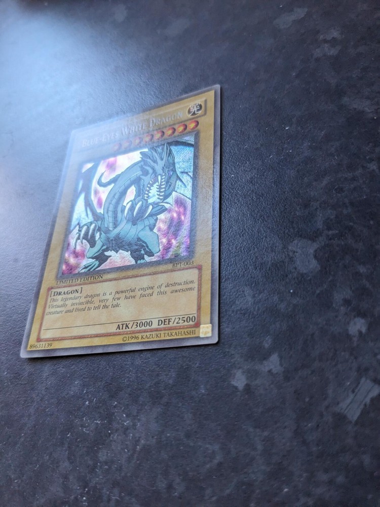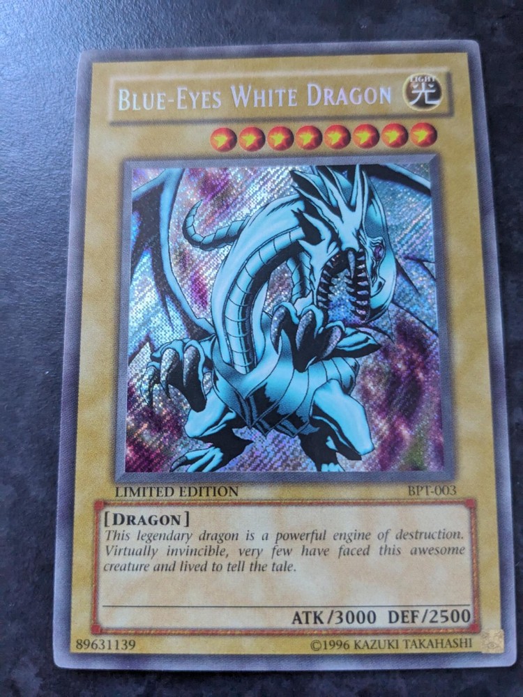 Unleash the power of the legendary Blue-Eyes White Dragon from the 2002 Collector's Tin, a must-have for any Yu-Gi-Oh! TCG enthusiast. This card, numbered 89631139, boasts the prestige of a Secret Rare rarity, ensuring it stands out in any collection. Featuring the iconic artwork that depicts the fierce dragon in stunning detail, this English language card is a testament to the game's rich history. As a Limited Edition piece, it holds not only strategic value for players but also collectable merit, making it a prized addition to your deck or display.
