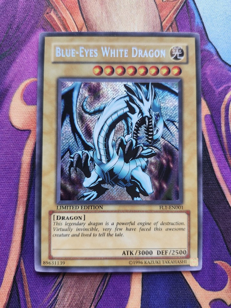 Hi! Listing is for the purchase of 1x Blue-Eyes White Dragon Limited Edition Secret Rare from Forbidden Legacy in Moderately Played condition. Please review the photos to confirm the card's condition is to your liking. I have done my best to take photos that highlight all of the card's flaws. There is a noticeable but very small crease on the back side of the card, however, it isn't visible from the front & the rest of the card is more of a lightly played condition. Please see the last few photos of the listing for a closer look. Feel free to reach out if you have any questions! I also have other listings if you have any interest! - angrybids