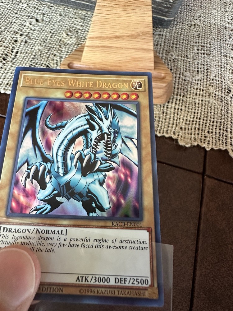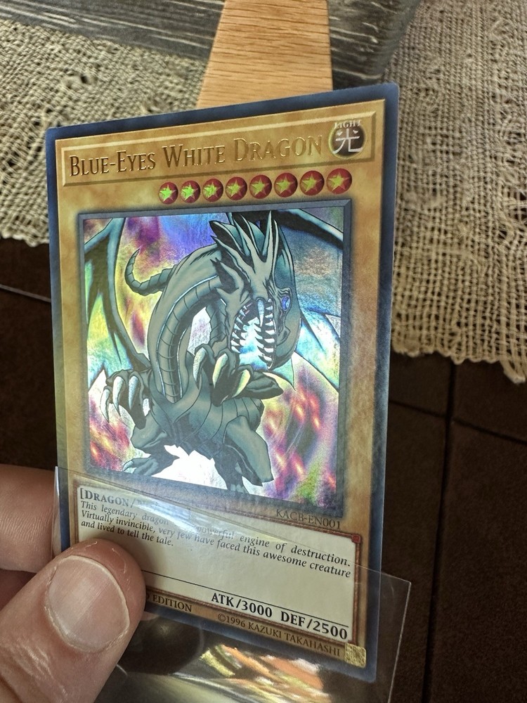 The Yu-Gi-Oh! Blue-Eyes White Dragon KACB-EN001 Ultra Rare Limited Edition card is a highly sought-after collectible for fans of the Yu-Gi-Oh! TCG. With its stunning design featuring Seto Kaiba and a powerful Dragon attribute, this card boasts a high defense and attack power of 2500 and 3000 respectively. Manufactured by Konami and part of the Collector's Boxes set, this English-language card is a must-have for any collector looking to enhance their deck with a rare and limited edition addition.