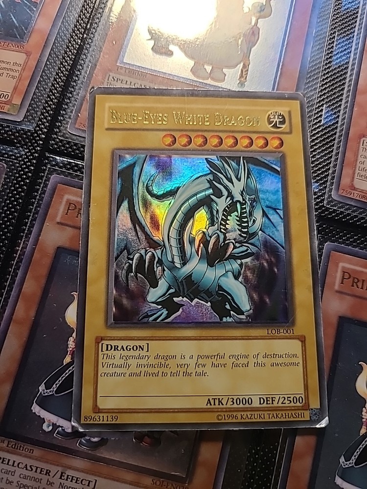 The Yu-Gi-Oh! TCG Blue-Eyes White Dragon from the Legend of Blue Eyes White Dragon set is a highly sought-after Ultra Rare card with impressive stats. With a defense of 2500 and an attack power of 3000, this English-language card is a valuable addition to any collector's deck. Manufactured by Konami, this normal-type dragon card is sure to be a prized possession for fans of the Yu-Gi-Oh! trading card game.