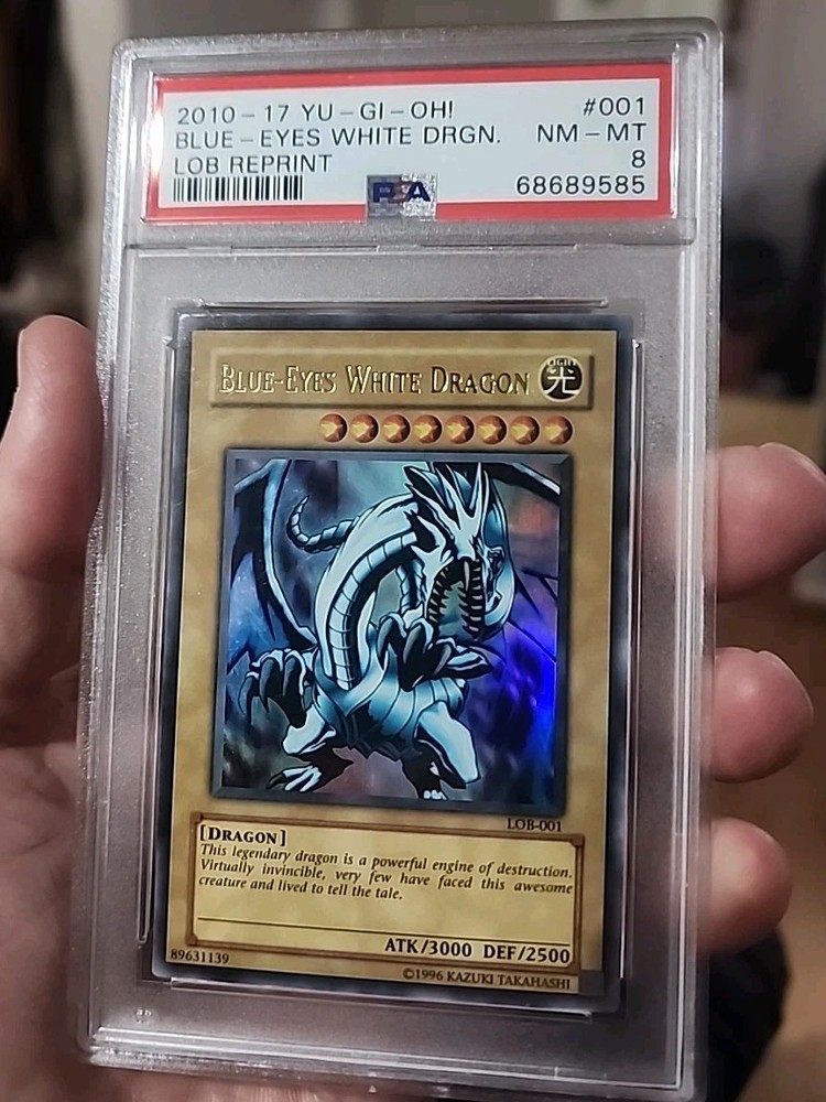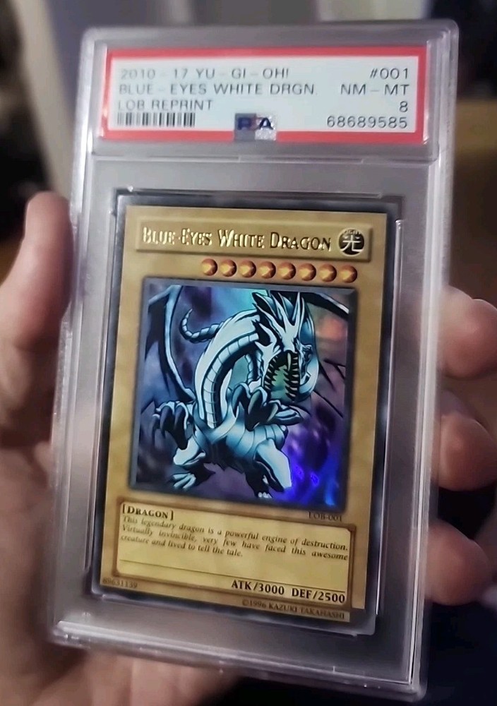 Yu-Gi-Oh Blue-Eyes White Dragon LOB-001 PSA 8 NM-MT 2002 Ultra Rare Beautiful card!