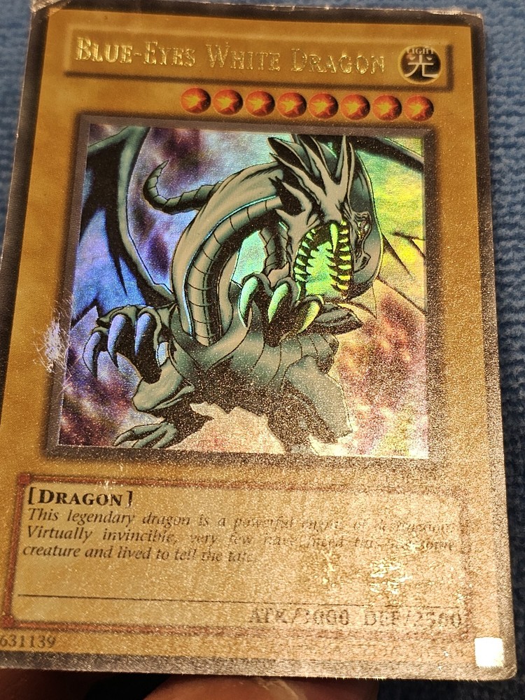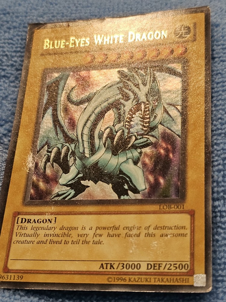 Yu-Gi-Oh! Blue-Eyes White Dragon [LOB-001] Ultra Rare Original Print 🔥 Please note the condition of the card. Has bends. Discoloration...