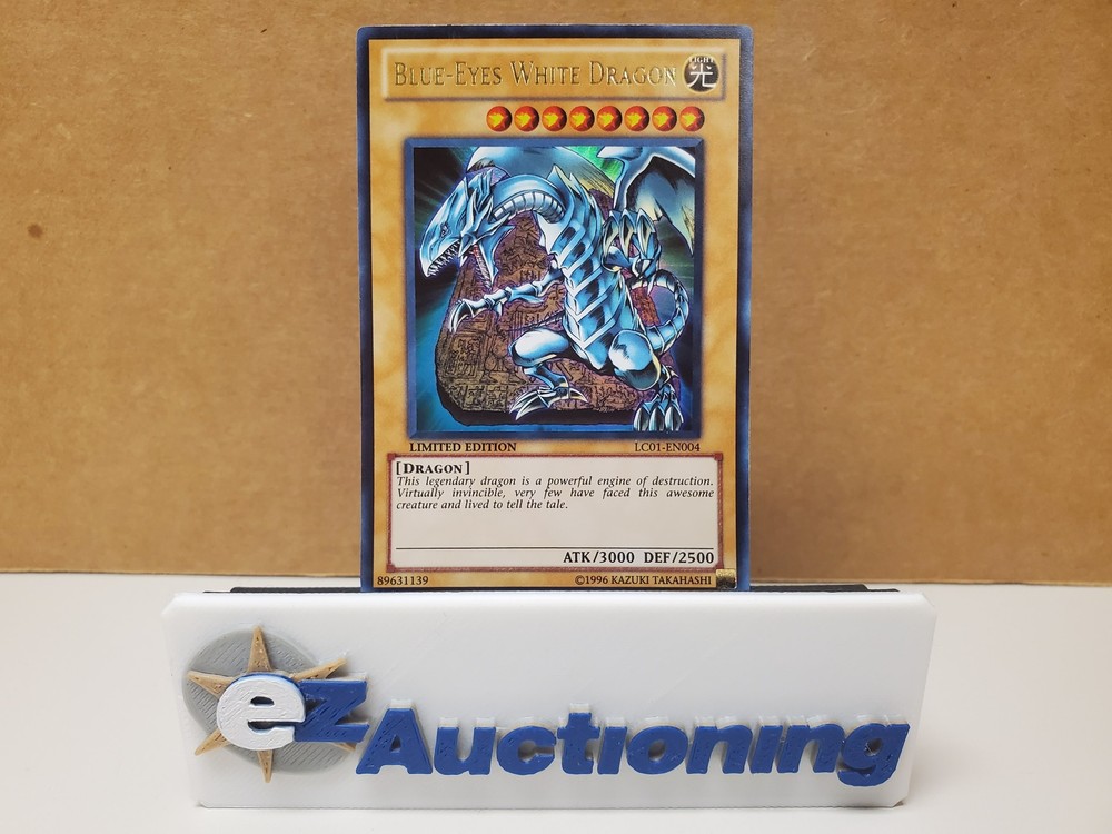 Yu-Gi-Oh Blue-Eyes White Dragon Limited Edition LC01-EN004 Foil Card Yu-Gi-Oh Blue-Eyes White Dragon Limited Edition LC01-EN004 Foil Card This auction is for (1) Yu-Gi-Oh Blue-Eyes White Dragon Limited Edition LC01-EN004 Foil Card. Manufacturer: Konami Type: CCG Card Size: Standard Condition: Lightly Played This auction is for the items shown in the photos, unless otherwise stated in the description, only. If it is not in the photos, it is not included in the auction. If you win more than one item please wait for the combined invoice, it may not be possible to ship all items in a single box, prior to submitting your payment. Location: TR Payment Receipt of Payment: Receipt of payment is required within four (4) calendar days of the closing of the auction. If payment is not received after four days, the transaction will be canceled. Shipping Packages are usually shipped within 24 hours of payment receipt (excluding Saturday/Sunday). Shipping costs for all orders can be determined by the shipping calculator in this auction. All orders are shipped via FedEx or USPS. Items listed as Local Pickup Only will not be shipped under any circumstances. Local pickups must be picked up within 30 days after payment is made. After 30 days the item will be considered abandoned and the property of ezAuctioning. International buyers, please be aware that you may incur a brokerage and/or customs fee upon delivery. The winning bidder is responsible for all custom fees and taxes. We reserve the right to choose a carrier based on shipping method selected at time of payment. All orders shipped outside of the U.S. will be shipped via eBay's international shipping program. As a result, we will not be able to offer combined shipping for most sales leaving the United States. Please keep this in mind when placing your bids. Policies ezAuctioning is not the owner of these goods, but merely a bailee acting on behalf of the seller to facilitate the sale of the goods by holding the goods until such time as a sale is completed and the goods are shipped to the buyer. ezAuctioning has used its best efforts to inspect the item(s) for sale and create descriptions and furnish photographs that fairly and adequately depict the type, condition and image of the goods at the time of sale. ezAuctioning makes no express or implied warranties or representations regarding the condition or suitability of the goods and to the extent allowed by law, specifically disclaims any express or implied warranties, including but not limited to any warranty of merchantability or fitness for purpose. All auctions include the items described within the auction. No additional items are included. ezAuctioning reserves the right to cancel bids on any item due to feedback. Purchases may be subject to sales tax. Please note that sales tax added by eBay cannot be removed by ezAuctioning. About Us We are an eBay consignment business. We assist with fundraising for organizations as well as selling for individuals. If you have a need for our services and you are located near Alexandria, VA, please contact us.