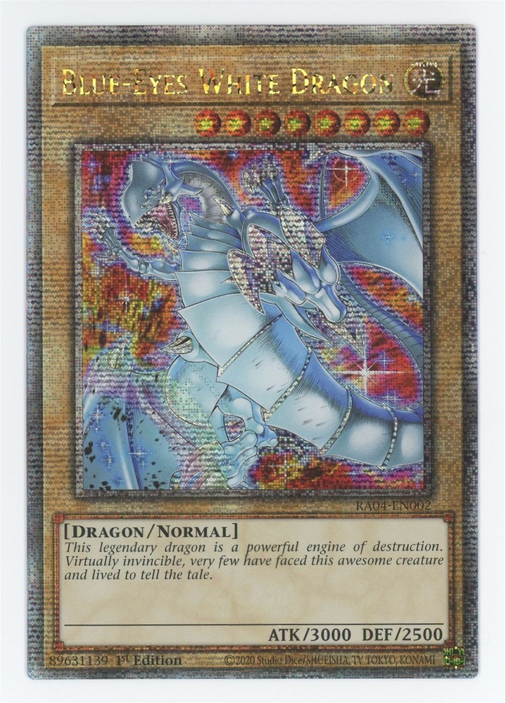 You are bidding on the following card(s): Quarter Century Stampede #RA04-EN002 Blue-Eyes White Dragon The card(s) included in this listing have the following attributes (if applicable): Quarter Century Secret Rare All cards are shipped with the utmost care! We ship the majority of our cards (any that sell for under $20) via eBay's standard envelope method. While using this method, we take the necessary precautions to ensure that your card(s) get to you safely! Sadly, per eBay's shipping policies for TCG lots, we are required to ship via first class. If you have any questions concerning combined shipping (or anything else), please feel free to reach out directly to us!