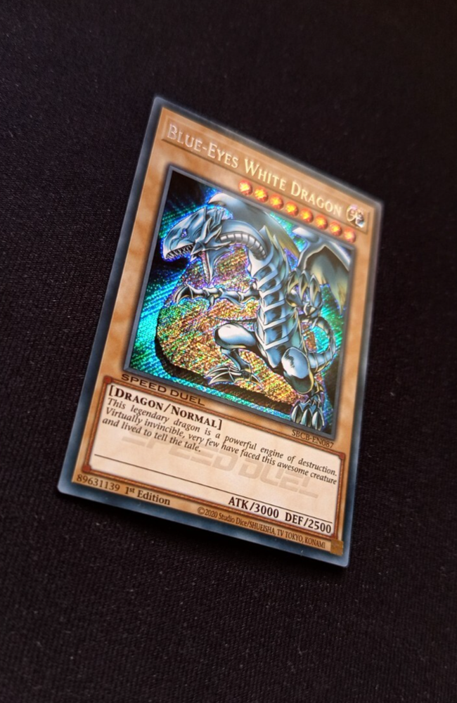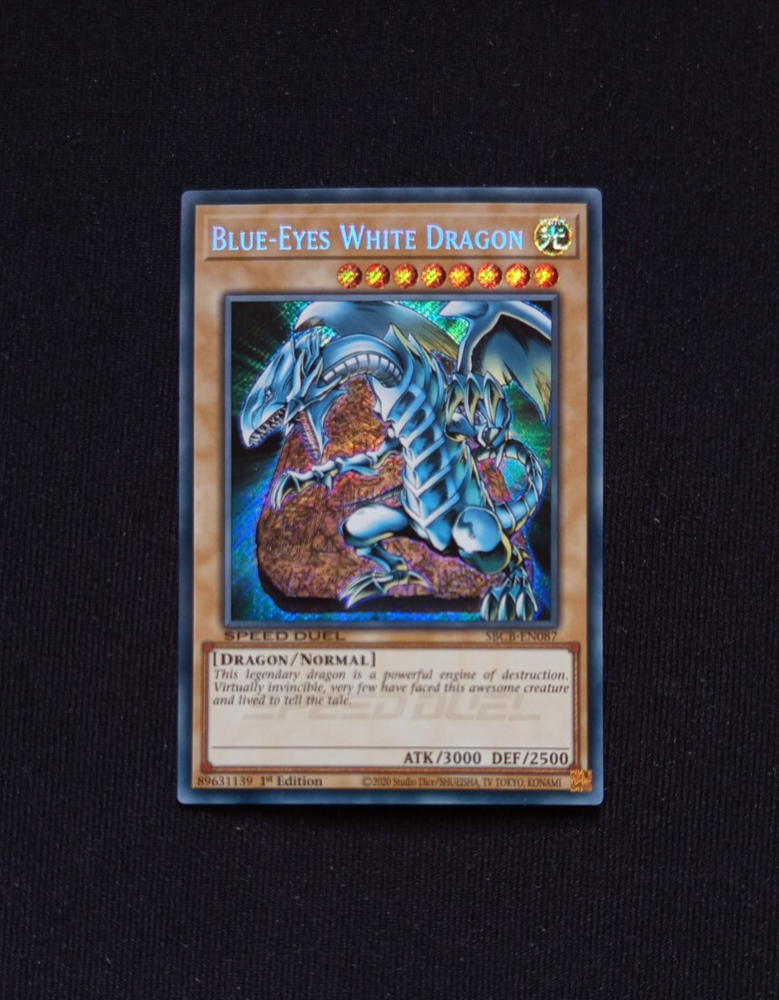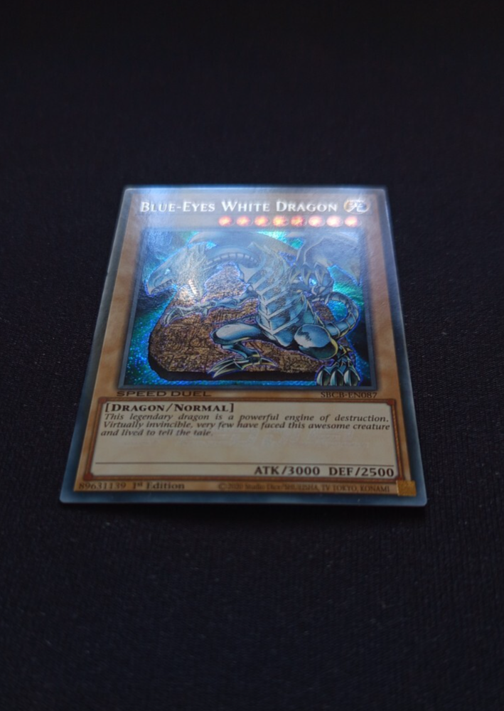 Yu-Gi-Oh! "Blue-Eyes White Dragon" SBCB-EN087 SPEED DUEL *Secret Rare* 1st Edition Language: English Condition: Near Mint I am selling my card collection. This is the card shown in the photos. The card is in the condition stated. The card will be sent safely packed in packaging material by German post. + The card will be sent with an additional soft sleave If you have any questions, please feel free to contact me! ----------------------------------------------------------------- DE: Blauäugiger weißer Drache Sprache: Englisch Zustand: Near Mint Ich verkaufe meine Kartensammlung. Es handelt sich um die Karte, die auf den Fotos gezeigt ist. Die Karte befindet sich im angegebenen Zustand. Die Karte wird sicher in Verpackungsmaterial eingepackt mit der deutschen Post versendet. + Die Karte wird mit einer zusätzlichen Softhülle verschickt Bei Rückfragen melden Sie sich gerne bei mir!