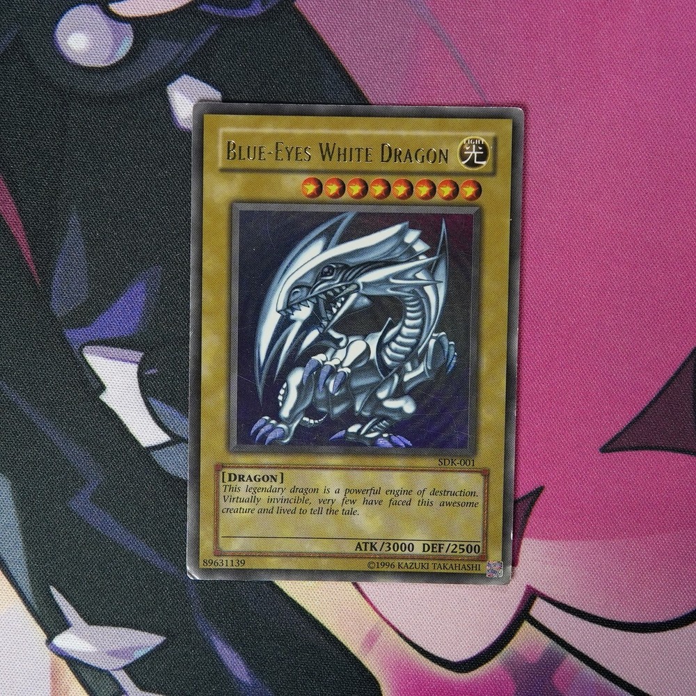 This Yu-Gi-Oh! Blue-Eyes White Dragon SDK-001 card is a vintage collectible from 2002, featuring an ultra-rare finish and foil effect. It is lightly played and comes from the Starter Deck: Kaiba set, with the card number SDK-001. The card is in English language and manufactured by Konami. The card is a Monster type, with a Dragon creature/monster type and a Light color attribute. It is perfect for collectors and fans of the Yu-Gi-Oh! TCG game. Get your hands on this highly sought-after card today!