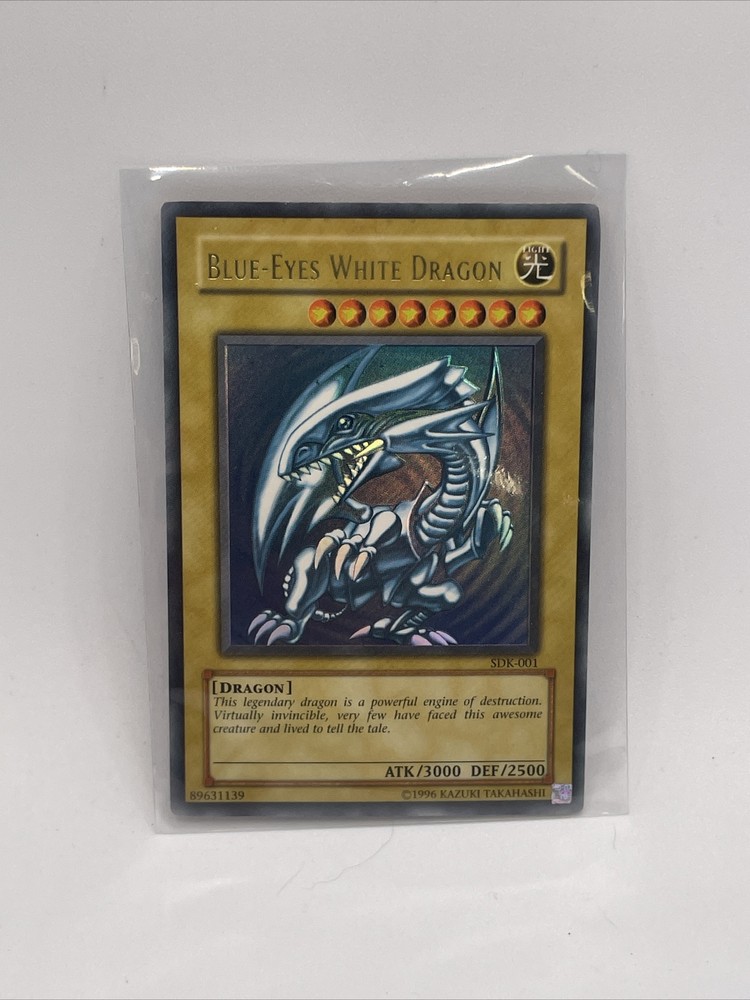 This Yu-Gi-Oh! TCG card is a Blue-Eyes White Dragon, with the card number SDK-001, from the Yugi set. The card features a Light Dragon creature/monster type and is named "Dragons". It is an ungraded card, ideal for collectors of CCG individual cards. The card is lightly played and is an excellent addition to any toy and hobbies collection. The card's color is blue, making it a perfect gift for anyone who loves the Yu-Gi-Oh! TCG game. Own this rare collectible card and add it to your collection today!