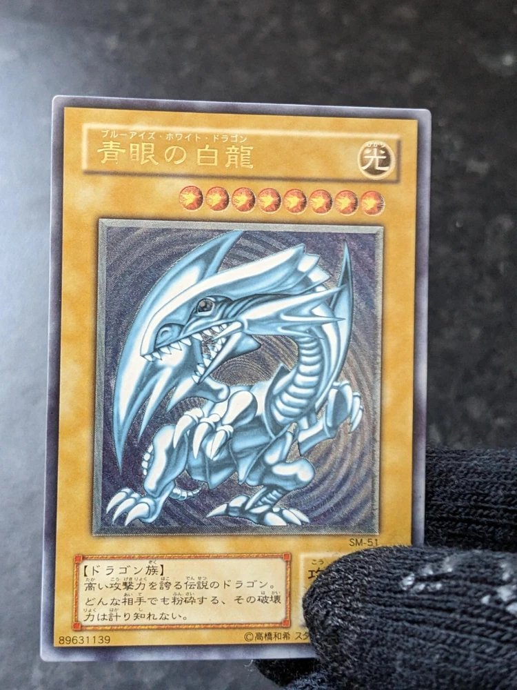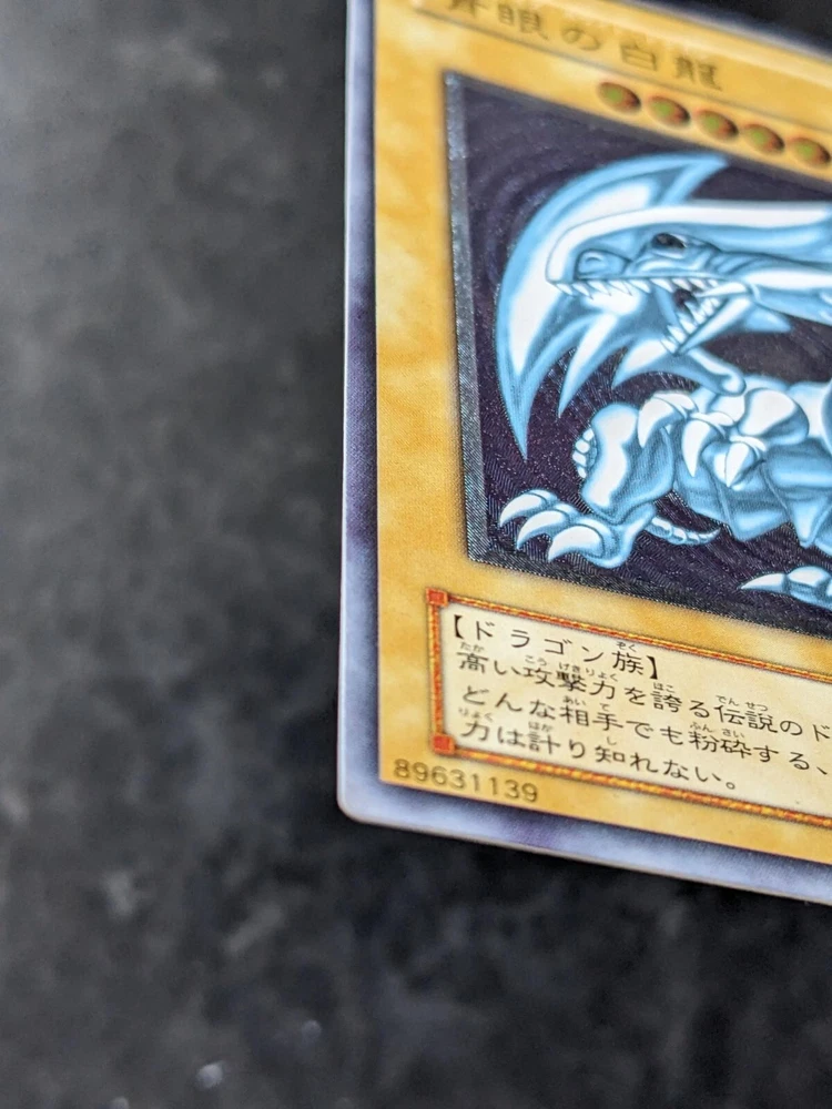 Delve into the world of high-stakes duels with the revered Blue-Eyes White Dragon card from the Yu-Gi-Oh! TCG. A must-have for collectors and players alike, this ultimate rare card from the Spell of Mask set is a formidable addition to any deck. Its Japanese language text adds an authentic touch for enthusiasts seeking to capture the original spirit of the game. Card number 89631139 represents the epitome of power and prowess in the Yu-Gi-Oh! universe. This particular Blue-Eyes White Dragon card is a standout piece, sure to elevate your game or collection with its impressive presence. A minor backside-only near-edge surface-level wrinkle probably resulted from mishandling .
