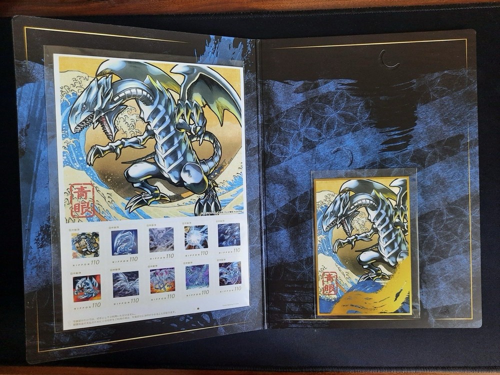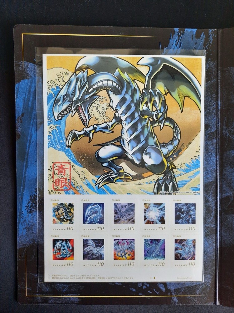 YuGiOh 25th Anniversary Blue-Eyes White Dragon Ukiyo-e Edition Stamp Collaboration with the Japan Post Office. Purchase is for the stamp set and post card, blue-eyes trading card is not included. Small corner nick on the folder from poor packaging. Otherwise, stamp set and post card are untouched, in mint condition. If you have any questions, feel free to send me a message! I will usually respond within 1-2 days. I’m open to accepting offers / making deals, especially if you plan to purchase multiple items! I can also consolidate shipping costs in that case.