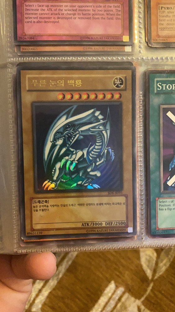 Yu-Gi-Oh Blue-Eyes White Dragon with Starter Box SDK-K001 Korean Near Mint condition is "Used". I Ship with USPS. Small wear and tear on corners. Never played and always kept in Sleeve.