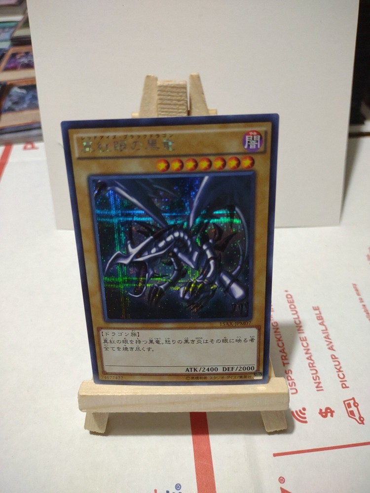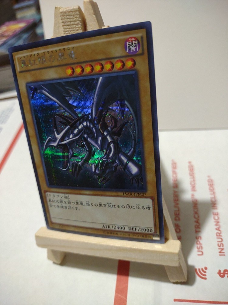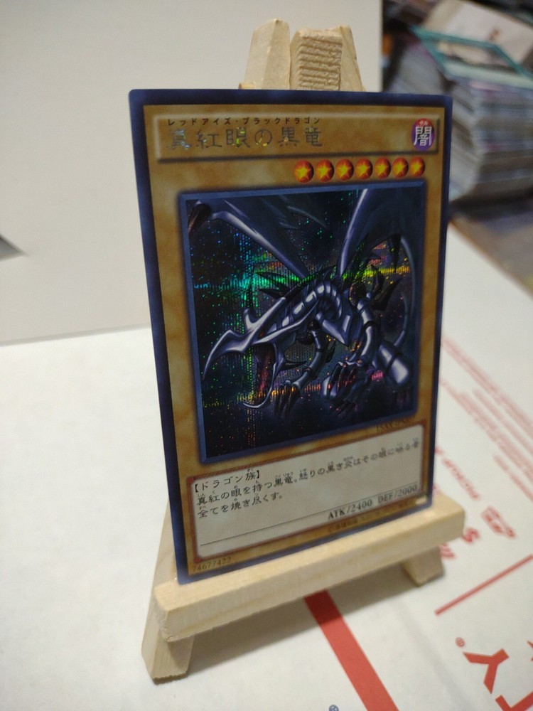 This Yu-Gi-Oh card features the iconic Red-Eyes B. Dragon in stunning foil finish. It is a standard-sized normal monster card made with high-quality card stock material. The card is from the Yugi set and has the card number 74677422. The Red-Eyes B. Dragon card is in near-mint condition and comes from the Japanese version of the Yu-Gi-Oh trading card game. It is rare, with a secret rarity, and is perfect for collectors and fans of the series. Get your hands on this amazing card today!