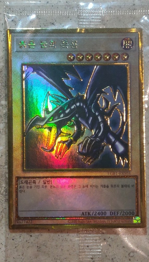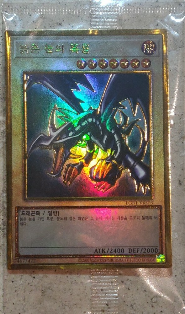 This Red-Eyes B. Dragon in GOLD ULTIMATE RARE is stunning! The holographic finish shines beautifully, and it's sealed in perfect mint condition—ideal for collectors. The Korean version adds a unique touch, and the card looks even better in person. Fast shipping and authentic packaging make this a fantastic purchase for any Yu-Gi-Oh! fan. Highly recommended!