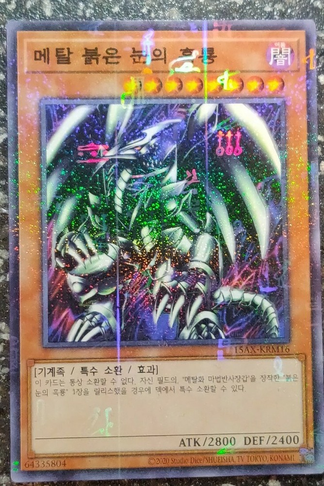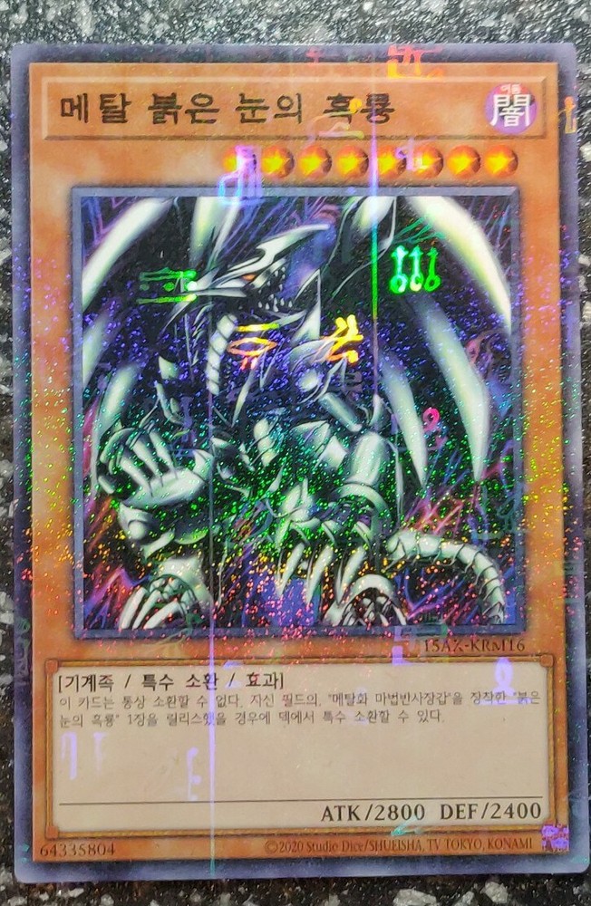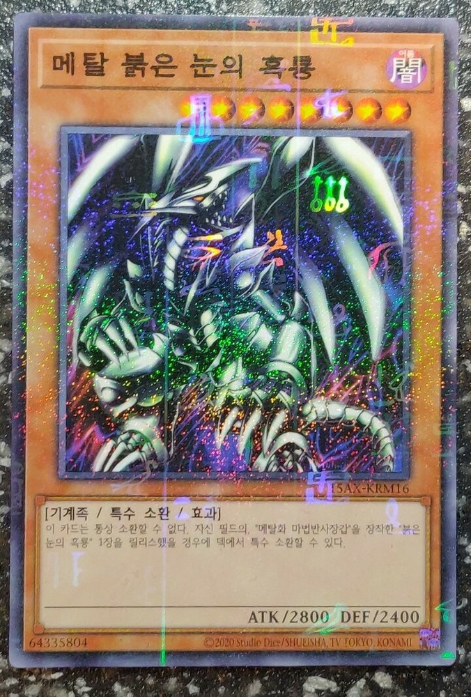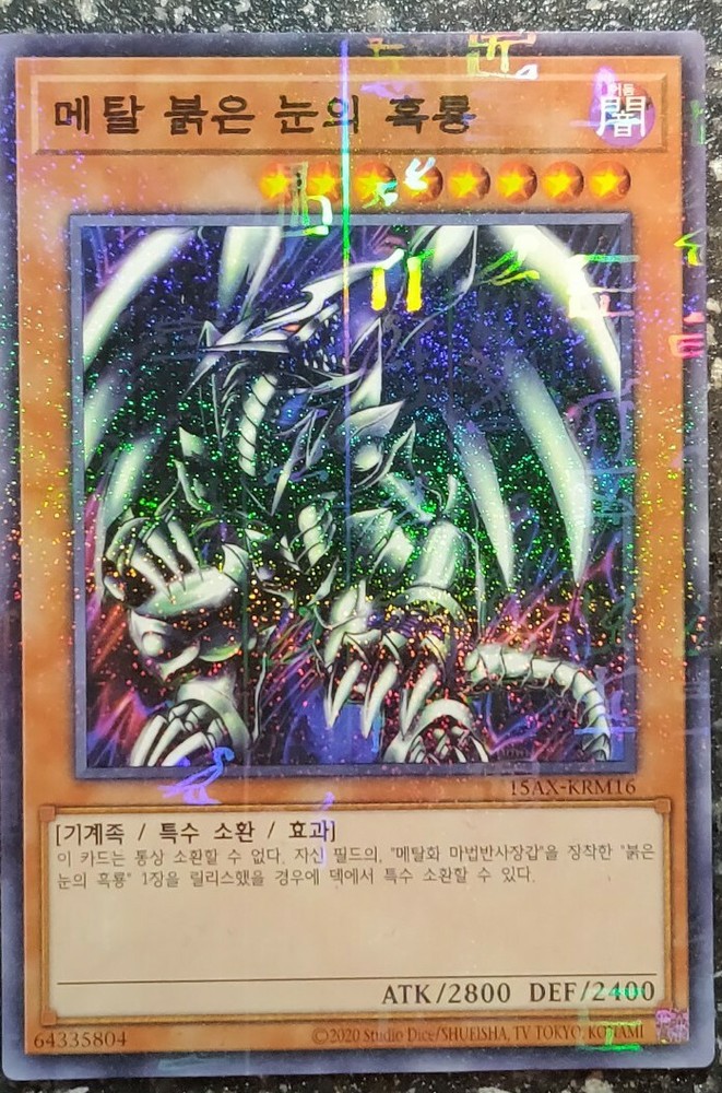 MILLENIUM RARE HOLOGRAPHIC version of Red-Eyes Black Metal Dragon! VERY BEAUTIFUL HOLOGRAPHIC PATTERN ON THIS CLASSIC CARD, PLEASE LOOK AT THE PHOTOS! ABSOLUTELY A MUST HAVE Card for all collectors! The card is in Mint / NM condition. Condition is New. Shipped with USPS First Class Package. 100% AUTHENTIC BUY WITH CONFIDENCE This card is in the Korean language. Please note that this is not the English version of the card. You will receive the card in the photos in my listing in a safe protective hard case. Thank you for looking at my listing.