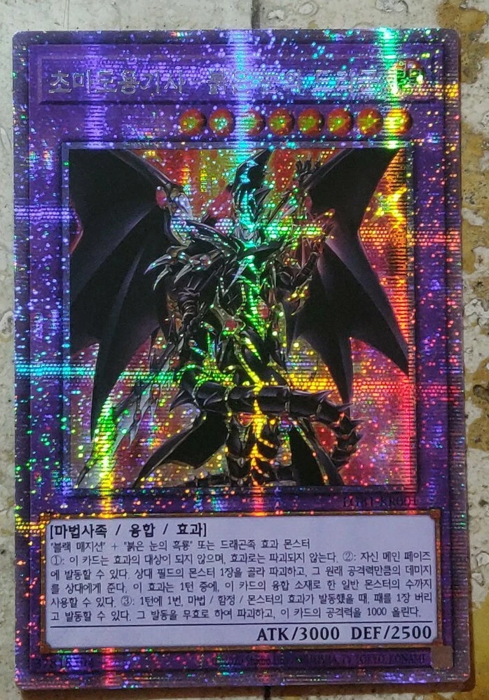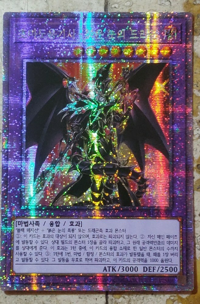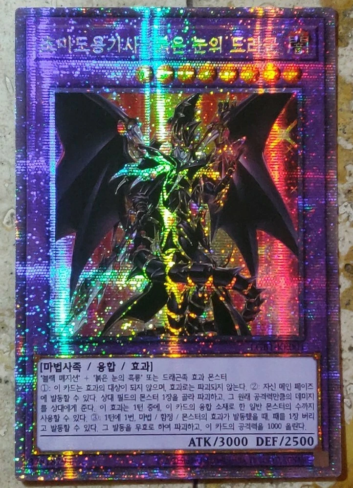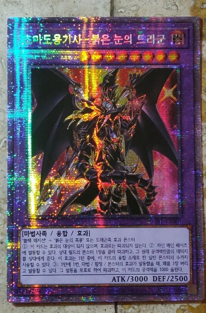 YuGiOh! Card "Red-Eyes Dark Dragoon" - STARLIGHT SECRET PRISMATIC RARE - MINT ABSOLUTELY STUNNING HOLOGRAPHIC PATTERN ON THIS CARD, PLEASE LOOK AT ALL PHOTOS IN THE LISTING! ABSOLUTELY A MUST HAVE card for all collectors! The card is in Mint / NM condition. Condition is New. Shipped with USPS First Class Package. 100% AUTHENTIC BUY WITH CONFIDENCE This card is in the Korean language. Please note that this is not the English version of the card. You will receive the card in the photos in my listing in a safe protective hard case. Thank you for looking at my listing.