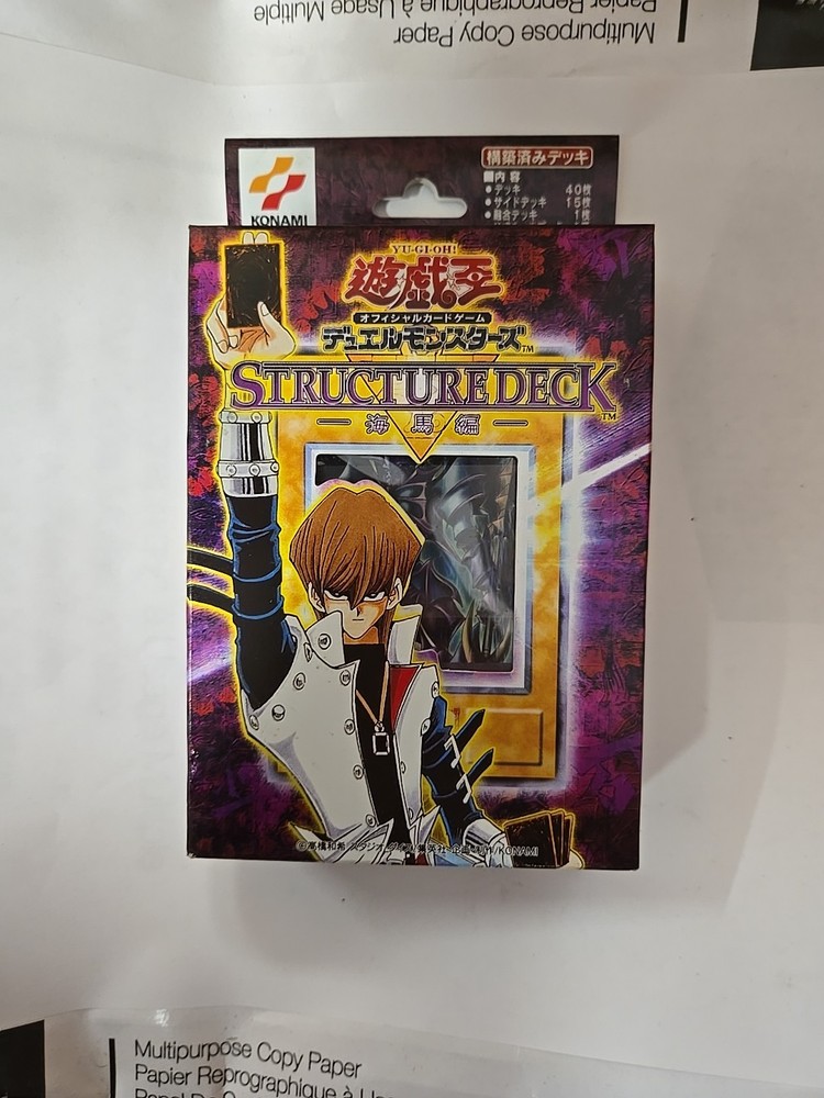 This Yu-Gi-Oh Cards Kaiba Structure Deck is a rare first generation collectible card set featuring the character Kaiba. Manufactured by Konami. The set is unopened and in Japanese language, perfect for collectors and fans of Yu-Gi-Oh! TCG looking to add a unique and valuable item to their collection.