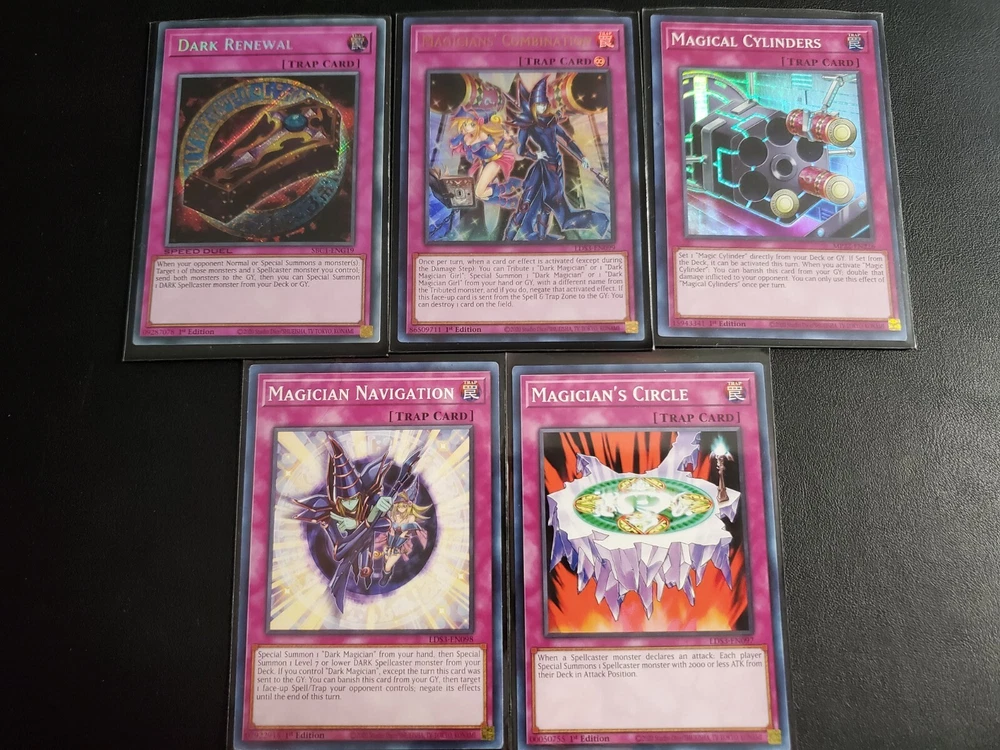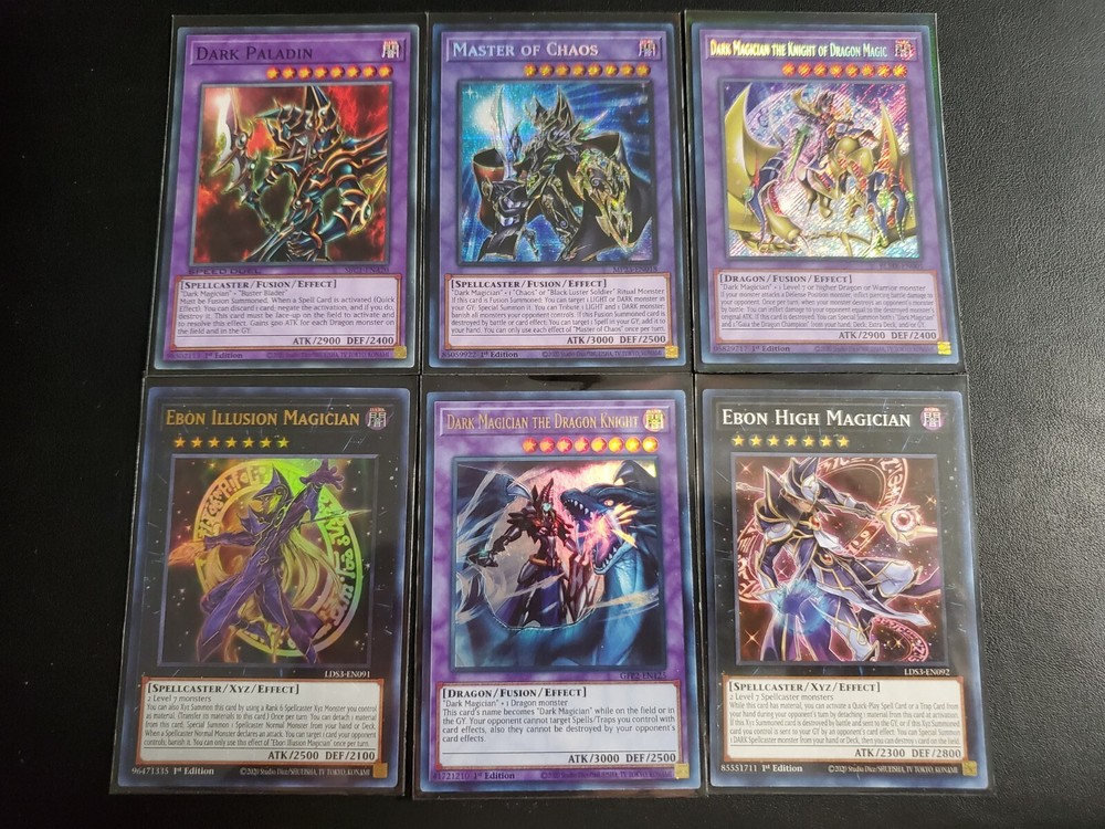 DESCRIPTION Yu-Gi-Oh! Dark Magician Deck Collection Monsters 1x Dark Magician (ultra rare) 1x Dark Magician arcana (ultra rare) 1x Magician Of Black Chaos Max (secret rare) 1x Illusion Of Chaos (secret rare) 1x Magician of Chaos (ultra rare) 1x Timaeus The United Dragon (secret rare) 1x Slyfer The Sky Dragon (secret rare) 1x Apprentice Illusion Magician (ultra rare) 1x Dark Magician Of Chaos (rare) 1x Dark Magician Girl (ultra rare) 1x Magician's Robe 1x Magician Of Dark Illusion 1x Magician's Rod 1x Skilled White Magician 1x Buster Blader 1x Skilled Dark Magician SPELL 1x Dark Magician Circle (ultra rare) 1x Exchage (secret rare) 1x Dark Magic Curtain (secret rare) 1x Dark Magic Attack 1x Chaos Form 1x Mystic Box 1x Infinite Cards 1x Swords Of Revealing Light 1x Magical Dimension 1x Anti-Magic Arrows 1x Polymerization 1x Monster reborn 1x Secrets Of Dark Magic 1x illusion magic 1x Thousand Knives 1x Black Magic Ritual TRAP 1x Dark Renewal (secret rare) 1x Magicians' Combination (ultra rare) 1x Magical Cylinders (super rare) 1x Magical Hats 1x Mirror Force 1x Dust Tornado 1x Spellbinding Circle 1x Magician Navigation 1x Magician's Circle 1x Lightforce Sword 1x Magic cylinder EXTRA 1x Master Of Chaos (secret rare) 1x Dark Magician The Knight of Dragon Magic (secret rare) 1x Dark Magician The Dragon Knight (ultra rare) 1x Dark Paladin 1x Ebon Illusion Magician (ultra rare) 1x Ebon High Magician You will receive every card that pictures show! bid with confidence. **Sleeves not Included** SHIPPING We ship up to 3 day after payment, except for holidays and weekend or when the delivery service is not available. FOR UNITED STATES CUSTOMERS: We use First Class for all kind of shipments, this include tracking number and the estimated delivery day is between 3 to 5 days, If you need a faster service send us a Message and we will help you to choose it. FOR INTERNATIONAL CUSTOMERS (outside united states): International shipping prices differ for each country and are calculated automatically by eBay. Tracking information is not available for international buyers beside Canada, once the package leave the US, the buyer have complete responsibility for that shipping. All duties and taxes are the responsibility of the buyer. They are not included in the listed price. Please check with your domestic customs office to determine what your additional costs will be prior to bidding. If you need to combine shipping please send us a message to help you.