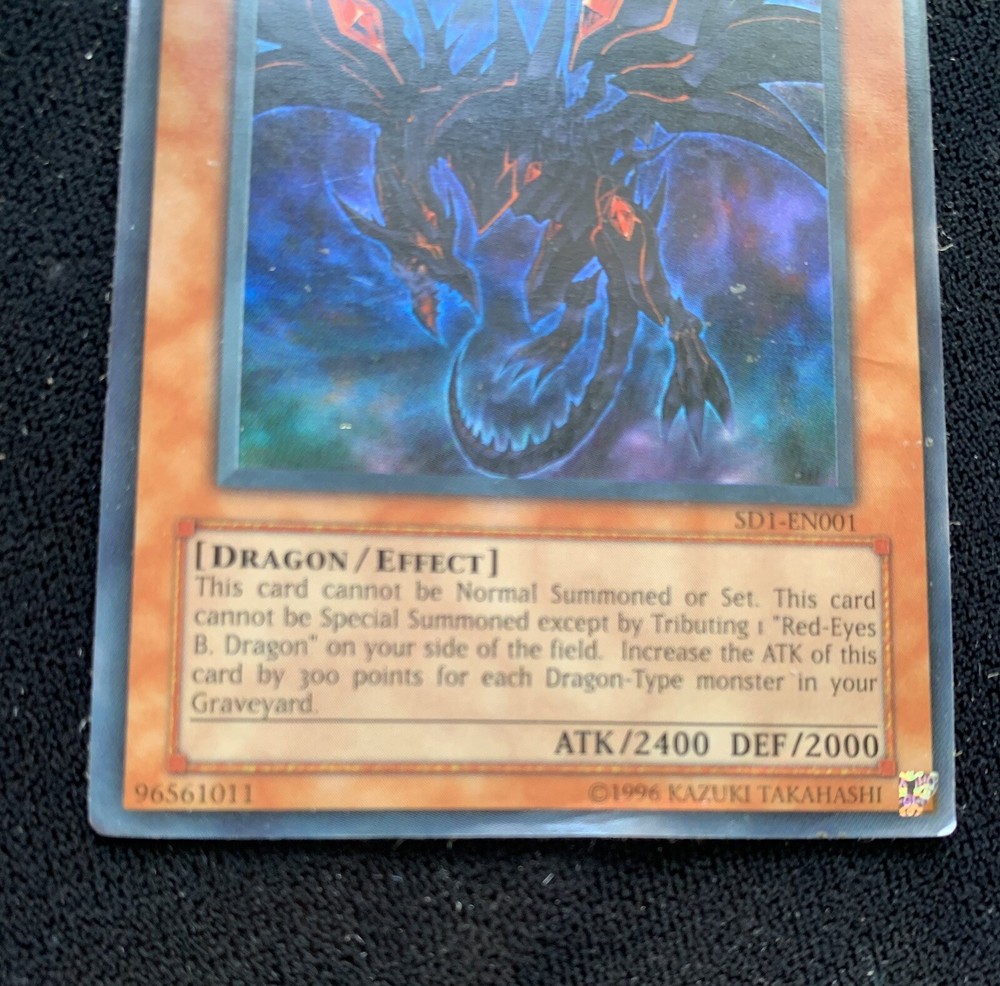 Red eyes darkness Dragon - unlimited holo Lightly played the front has a slight Nick at the bottom and top Back has edge wear but still in excellent shape...