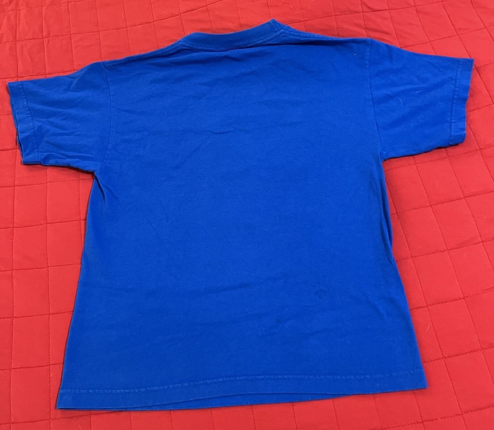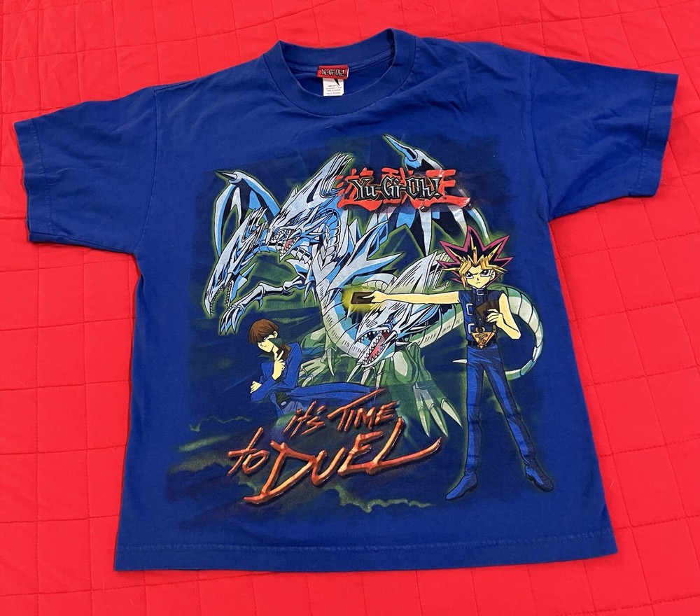 It’s time to duel! This officially licensed Yu-Gi-Oh! t-shirt brings serious nostalgia with a massive front graphic featuring Yugi, Seto Kaiba, and the legendary Blue-Eyes White Dragon. The bold blue base and vibrant print scream early 2000s anime hype, complete with the “It’s Time to Duel” tagline. Printed on an official Yu-Gi-Oh! tag and made of 100% cotton, this shirt is perfect for collectors, 2000s anime lovers, or anyone who spent afternoons building their deck and watching duels go down. • Large front graphic: Yugi, Kaiba, Blue-Eyes White Dragon, and “It’s Time to Duel” • Color: Royal blue • Size: Large • Fabric: 100% Cotton • Tag: Official Yu-Gi-Oh! branded tag • Made in Mexico Details: • Tag: Yu-Gi-Oh! Official / Made in Mexico / L-G • Condition: Pre-owned, good condition with only light signs of wear. No major flaws or fading noted. Graphic still very bold. • Back: Blank • Era: Likely early-to-mid 2000s (vintage style, classic anime design) These shirts are pre-owned and may be vintage. They may show signs of wear or have imperfections due to age. Please review all photos carefully and feel free to ask any questions before purchasing. Thanks!