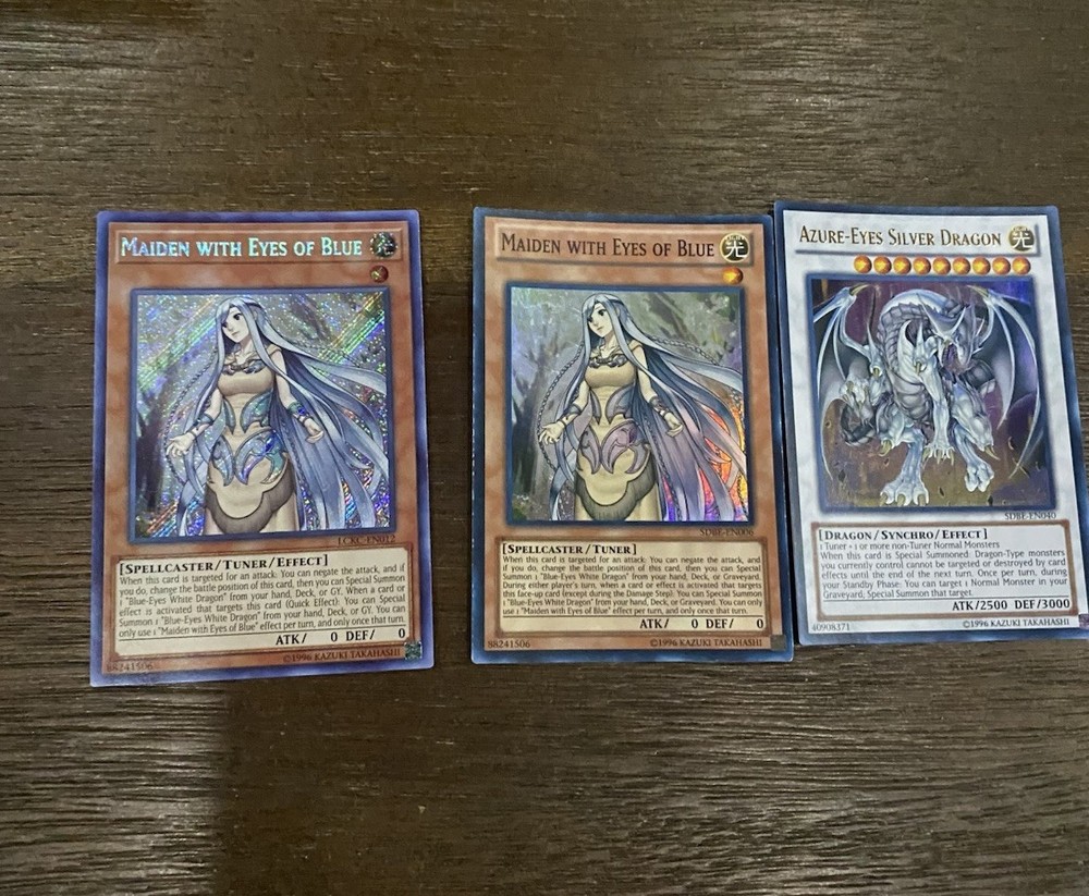 This Yu-Gi-Oh! Eyes of Blue set is a fantastic addition for any Blue-Eyes White Dragon fan! The cards are in great condition, neatly packed in sleeves and top loaders for protection. Love the variety—Maiden, Protector, Master, and even Kaibaman make it perfect for building a solid deck. Azure-Eyes Silver Dragon is an awesome bonus for the extra deck. Seller is super responsive if you need anything. Highly recommend for collectors or players looking to strengthen their strategy!